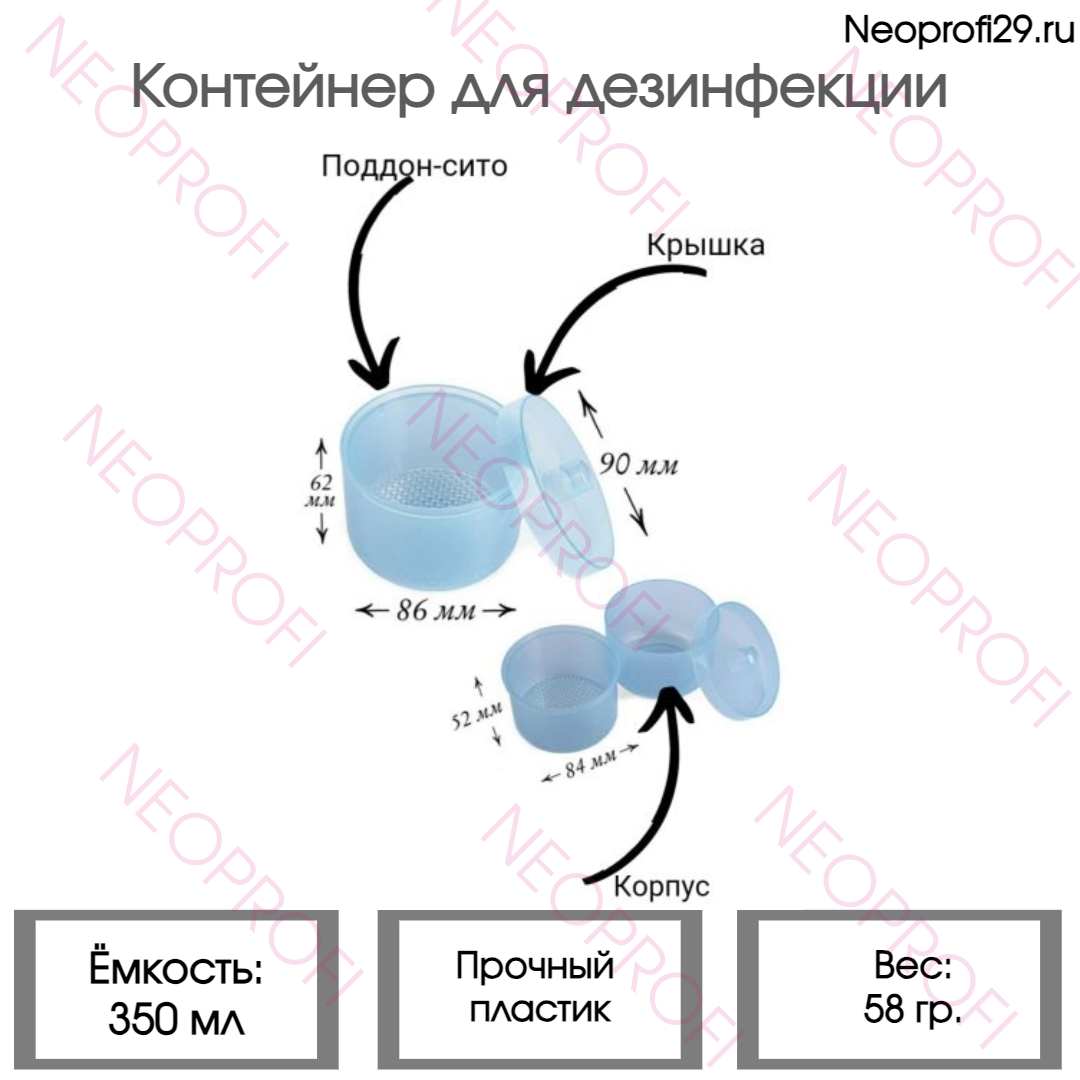 Пластиковый контейнер для дезинфекции стерилизации круглый прозрачный 350мл
