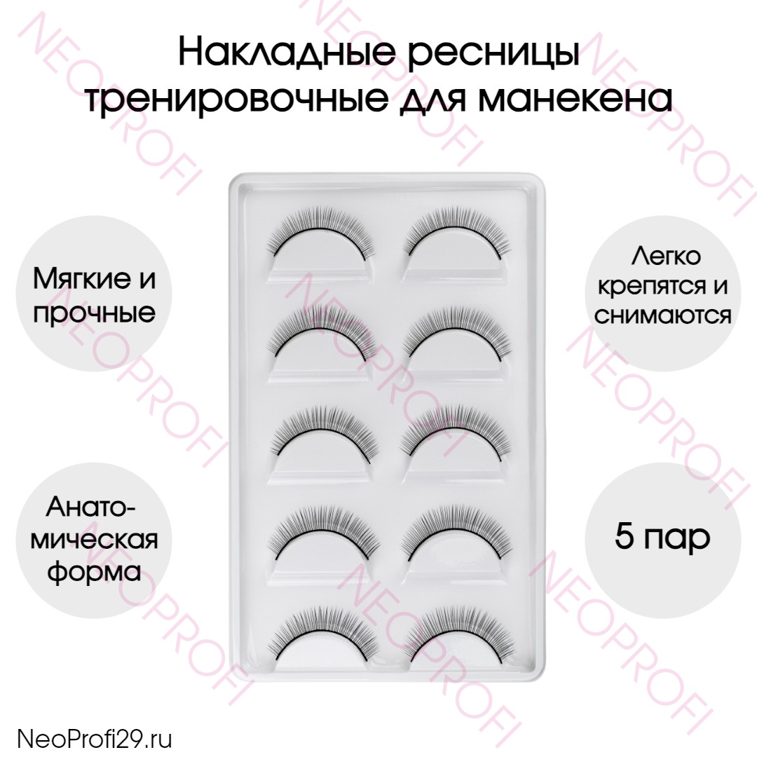 Ресницы тренировочные для манекена. Идеальное решение для обучающихся и начинающих мастеров для практической отработки процедуры наращивания ресниц. 5 пар в упаковке.