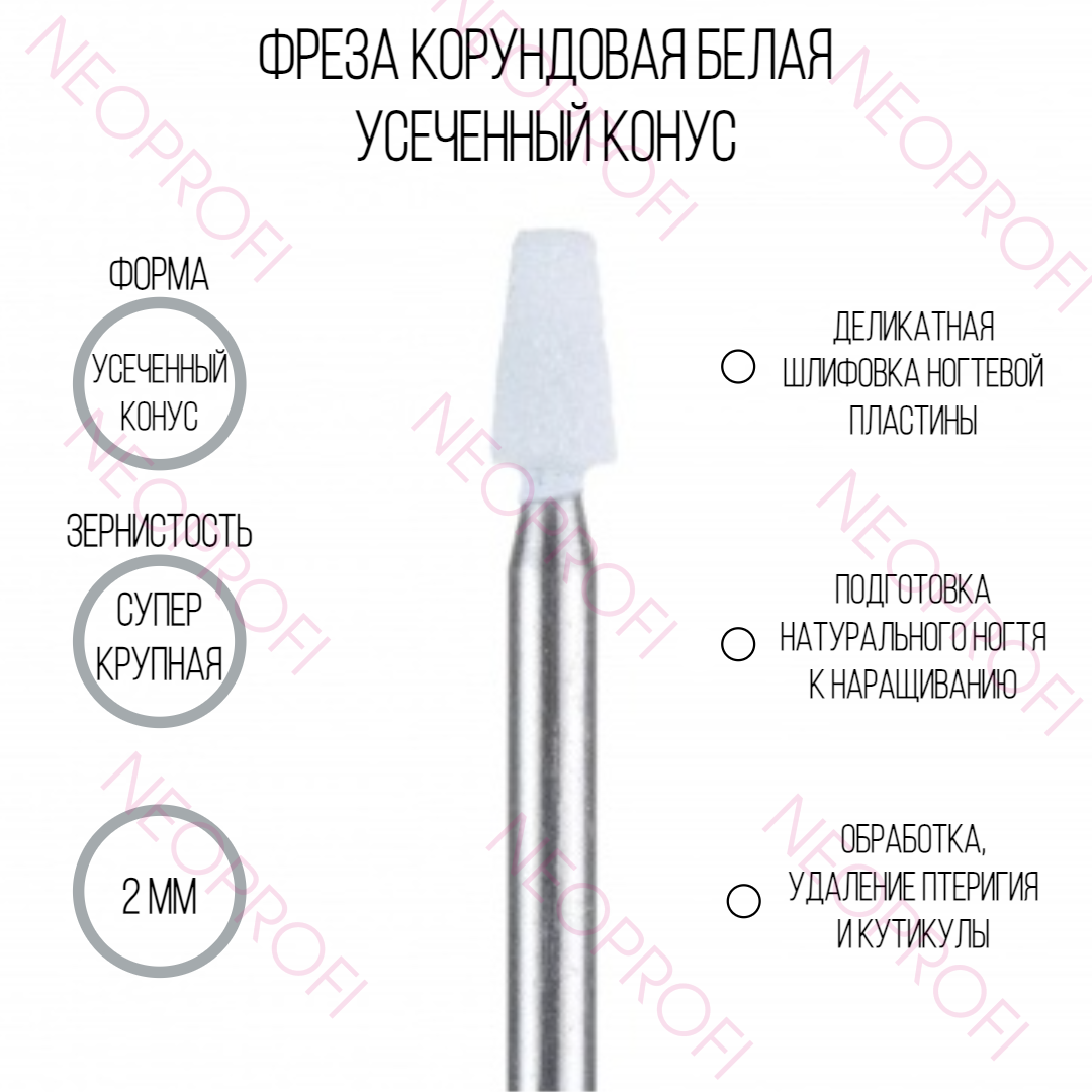 Фреза корундовая усеченный конус 2 мм (Белая) - Супер крупная зернистость.