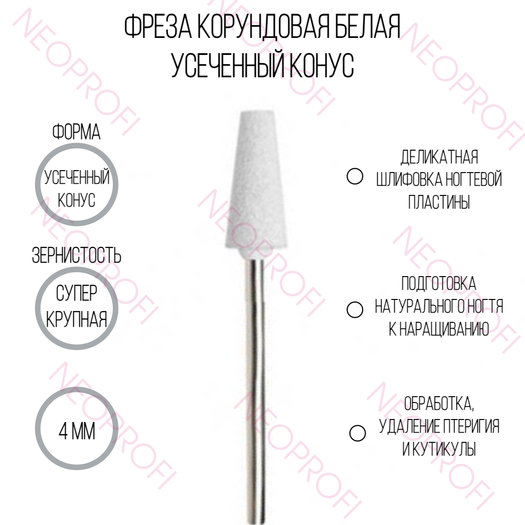 Фреза корундовая усеченный конус, белая 4мм