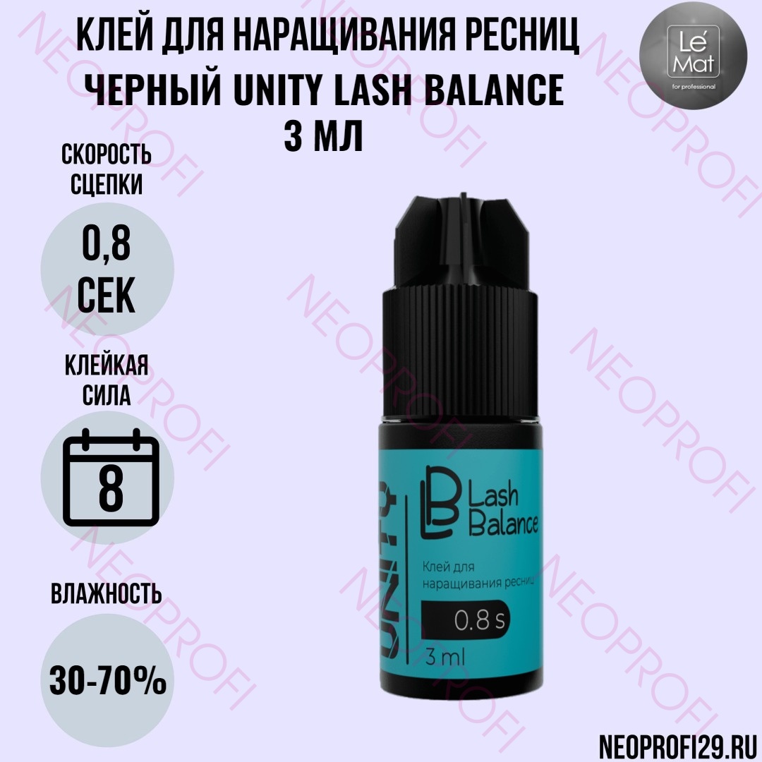 Клей для наращивания ресниц черный Unity 0.8 сек Lash Balance by LeMat 3 мл