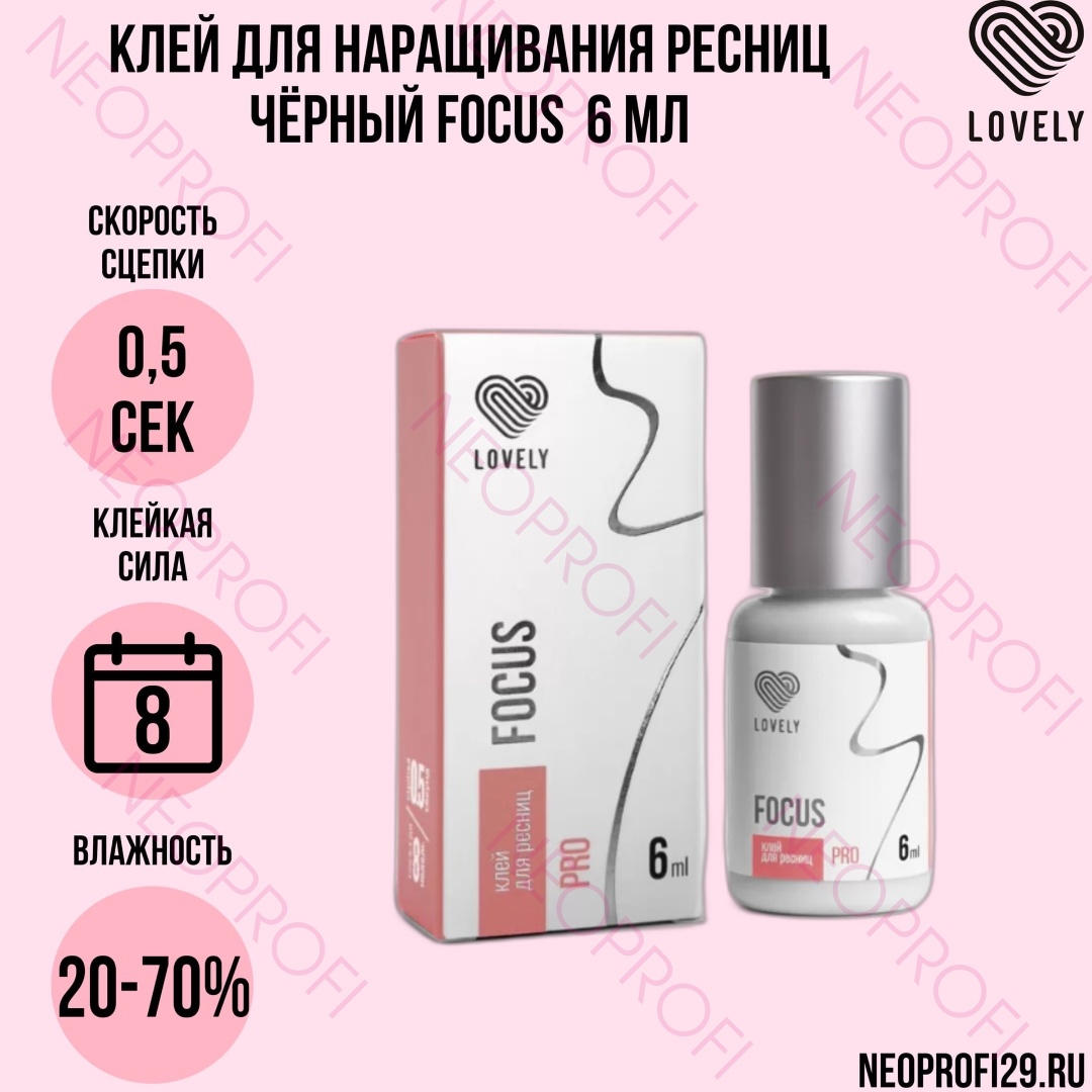 Клей для наращивания ресниц «Focus» – абсолютно новый клей Lovely, который работает супербыстро даже в условиях пониженной влажности. Благодаря улучшенной формуле скорость сцепки составляет меньше 0,5 секунды, а срок носки ресниц достигает 8 недель! Клей имеет жидкую консистенцию, минимальные испарения и отлично подходит для работы мастерам с большим опытом работы.
