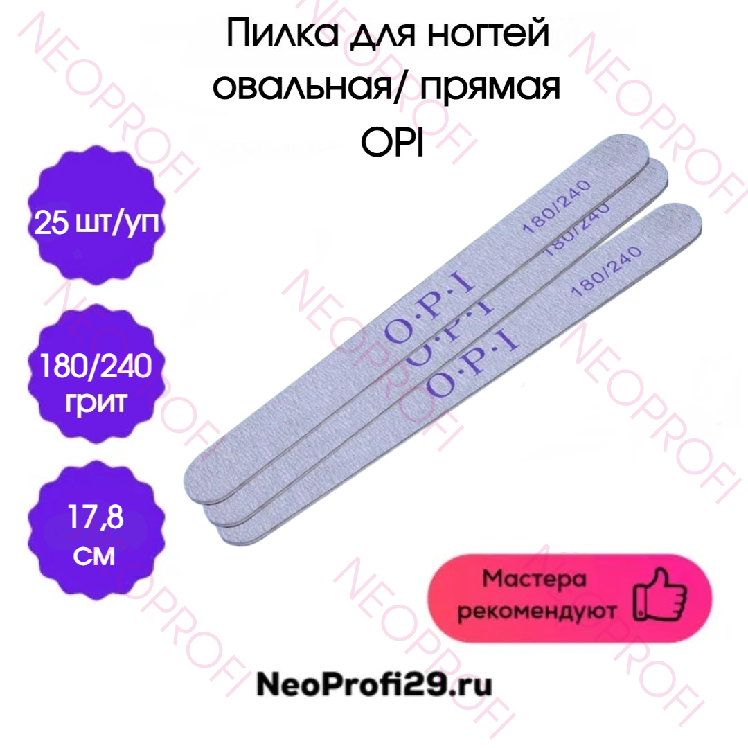 Пилка для ногтей овальная/прямая OPI 180/240 25шт/уп