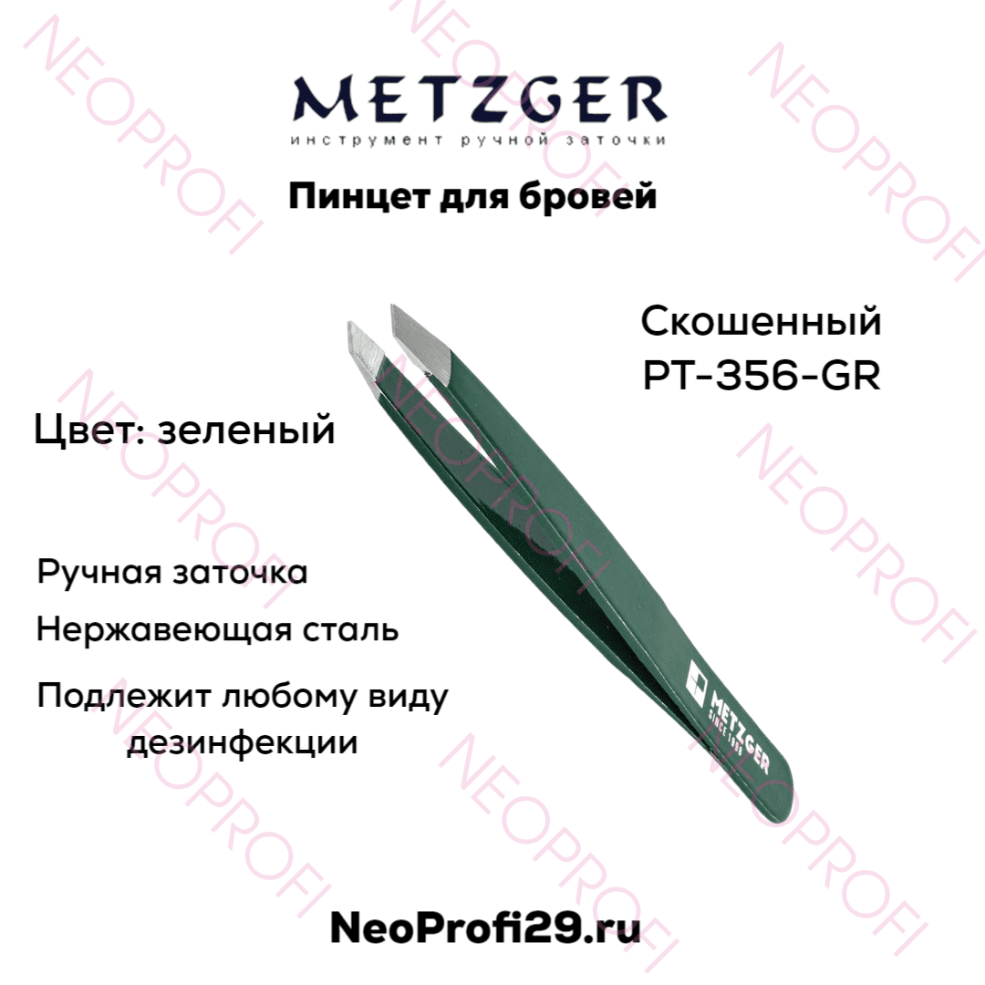 Пинцет для бровей скошенный PT 356 GR зеленый Metzger