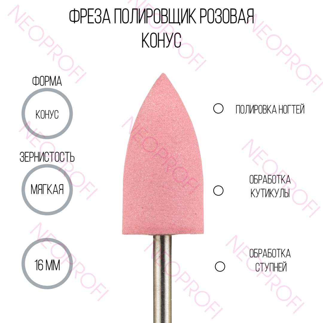 Фреза полировщик конус, розовая 16мм