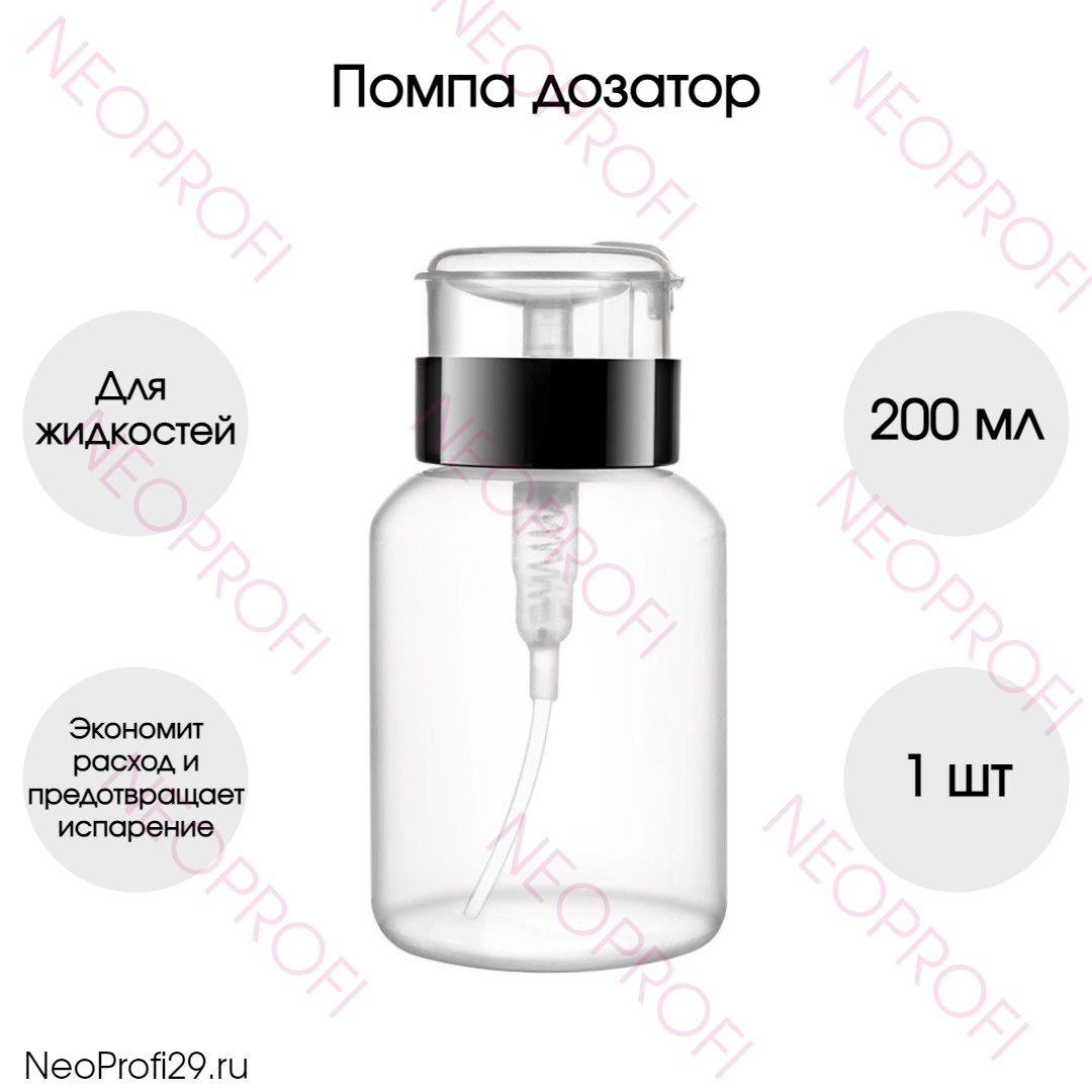 Емкость для дозированного расхода жидкости. Позволяет более экономично использовать дезинфицирующие средства, жидкости для снятия лака и липкого слоя, обезжириватель. Так же помогает сэкономить время при процедурах наращивания ногтей — больше не нужно открывать и закрывать емкости. Жидкость всегда доступна для использования, но при этом закрыта и не испаряется.