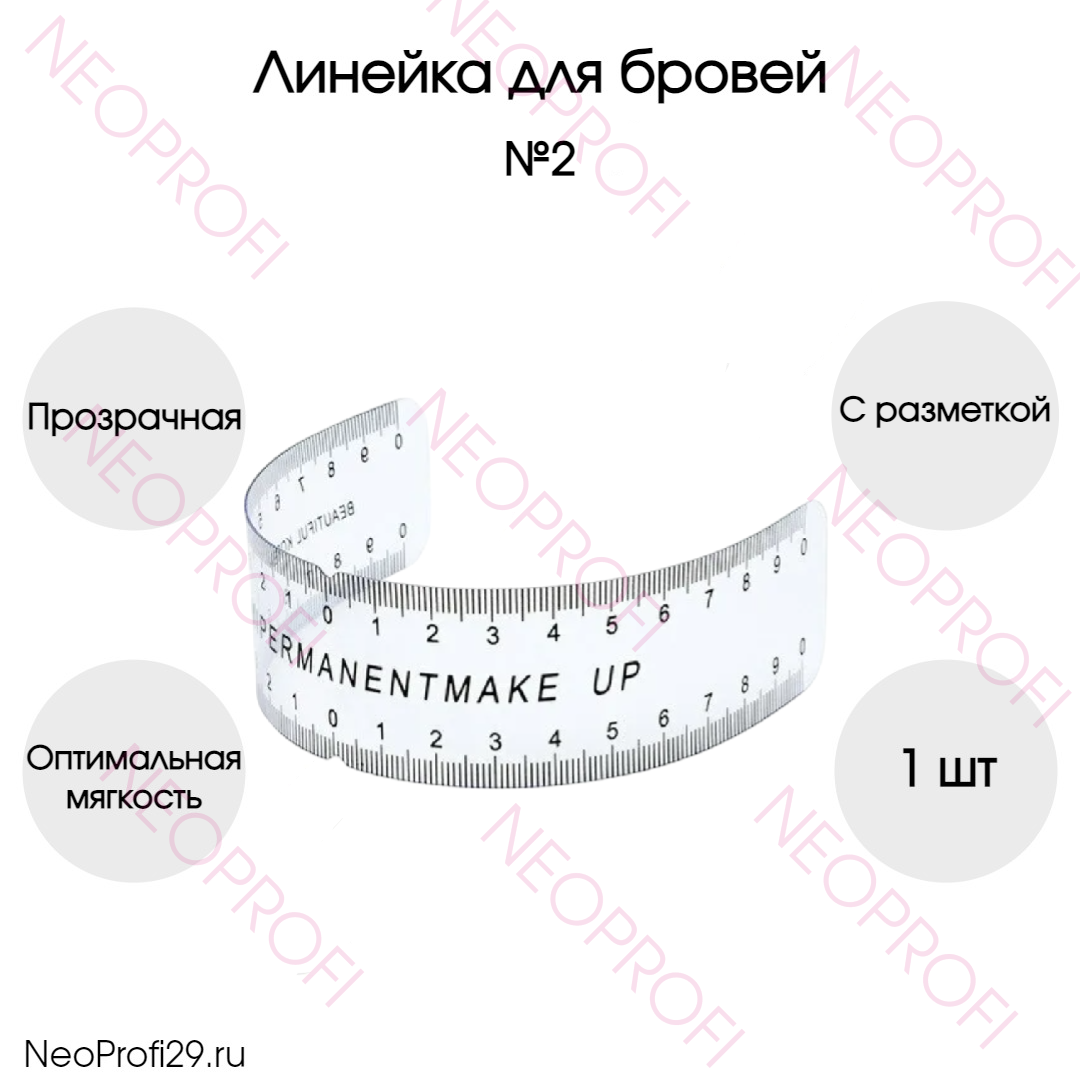 Многоразовая пластиковая линейка-трафарет для моделирования симметричной формы бровей. Линейка для бровей - подходит для татуажа, коррекции и окрашивания бровей, перманентного макияжа, микроблейдинга. Разметка и вырез для носа обеспечат удобство при построении и отрисовке правильной архитектуры бровей. Линейка для бровей выполнена из прозрачного эластичного пластика. Перед началом работы, необходимо снять защитную пленку с внутренней стороны.