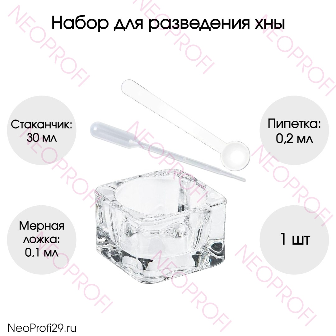 В стеклянную емкость добавляется мерной ложечкой то количество сухой хны, которое необходимо для проведения одной процедуры