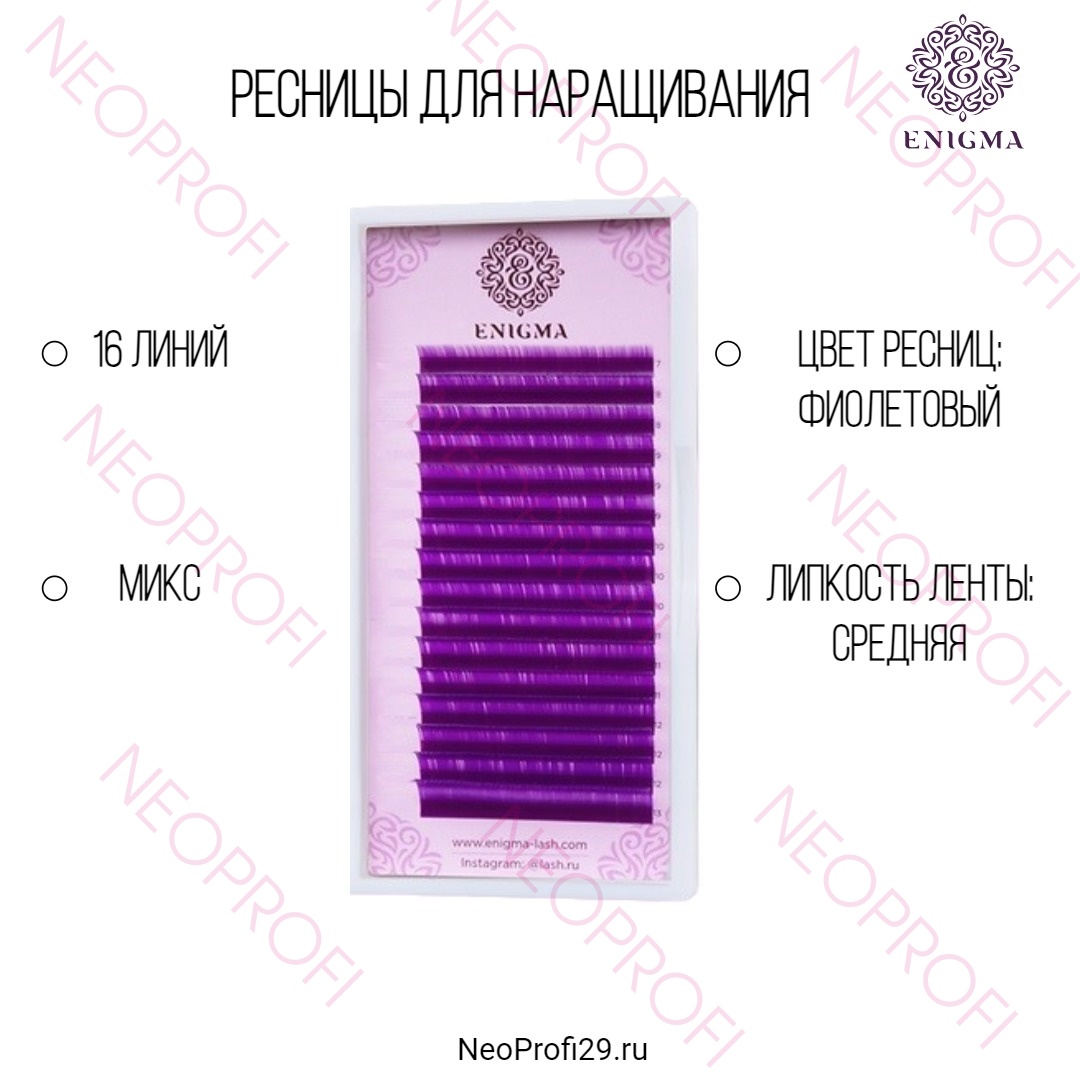 Ресницы цветные Enigma Фиолетовые микс 16 полос