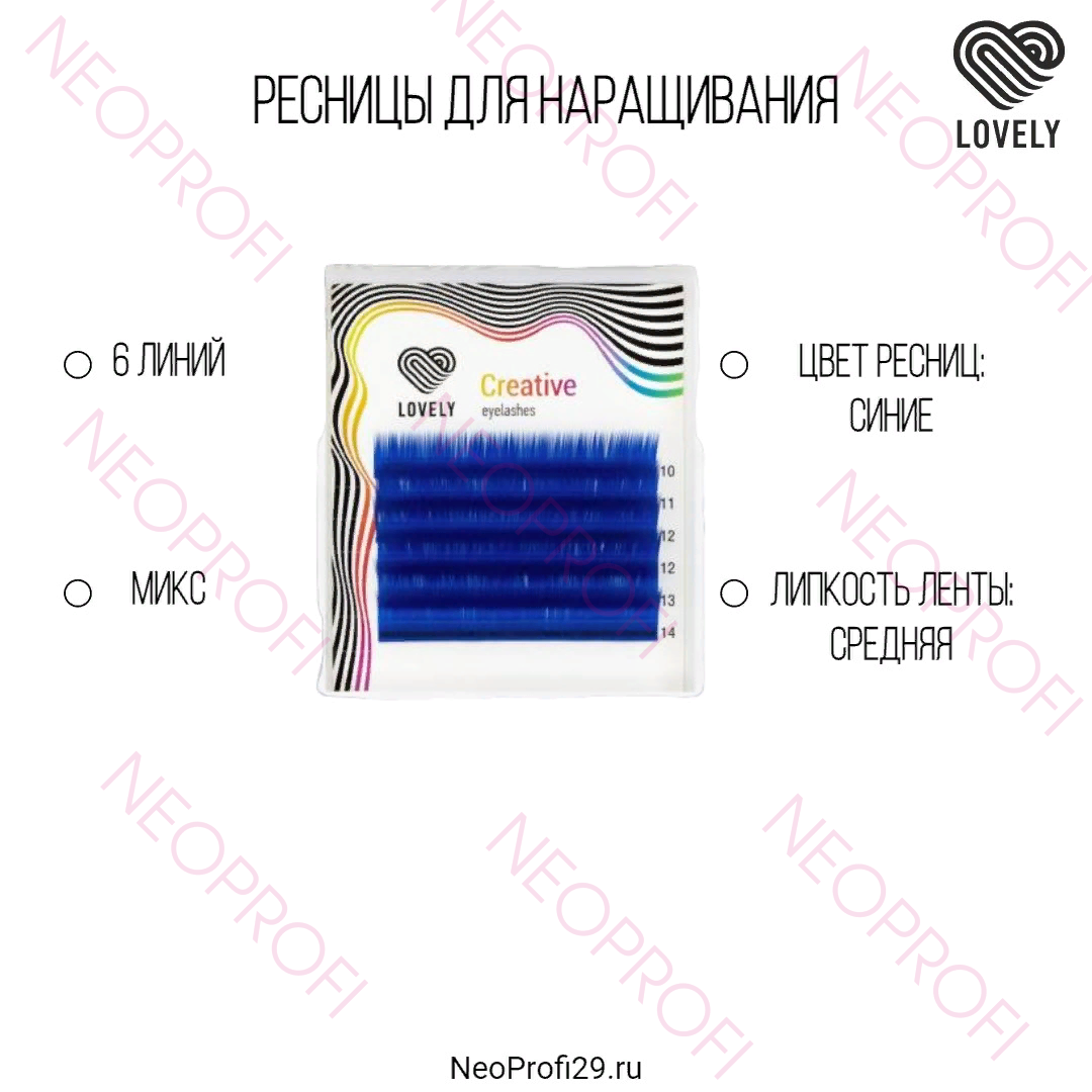 Яркие цветные ресницы созданы специально для любителей необычных образов. Такие ресницы выгодно подчеркнут цвет глаз и добавят образу индивидуальности. Цветные ресницы Lovely можно использовать как в качестве основного цвета, так и как акцент при черном или коричневом наращивании. Все цветные ресницы Lovely изготавливаются из высококачественного волокна, легкие и эластичные, не деформируются в процессе работы и отлично держат форму во время носки.