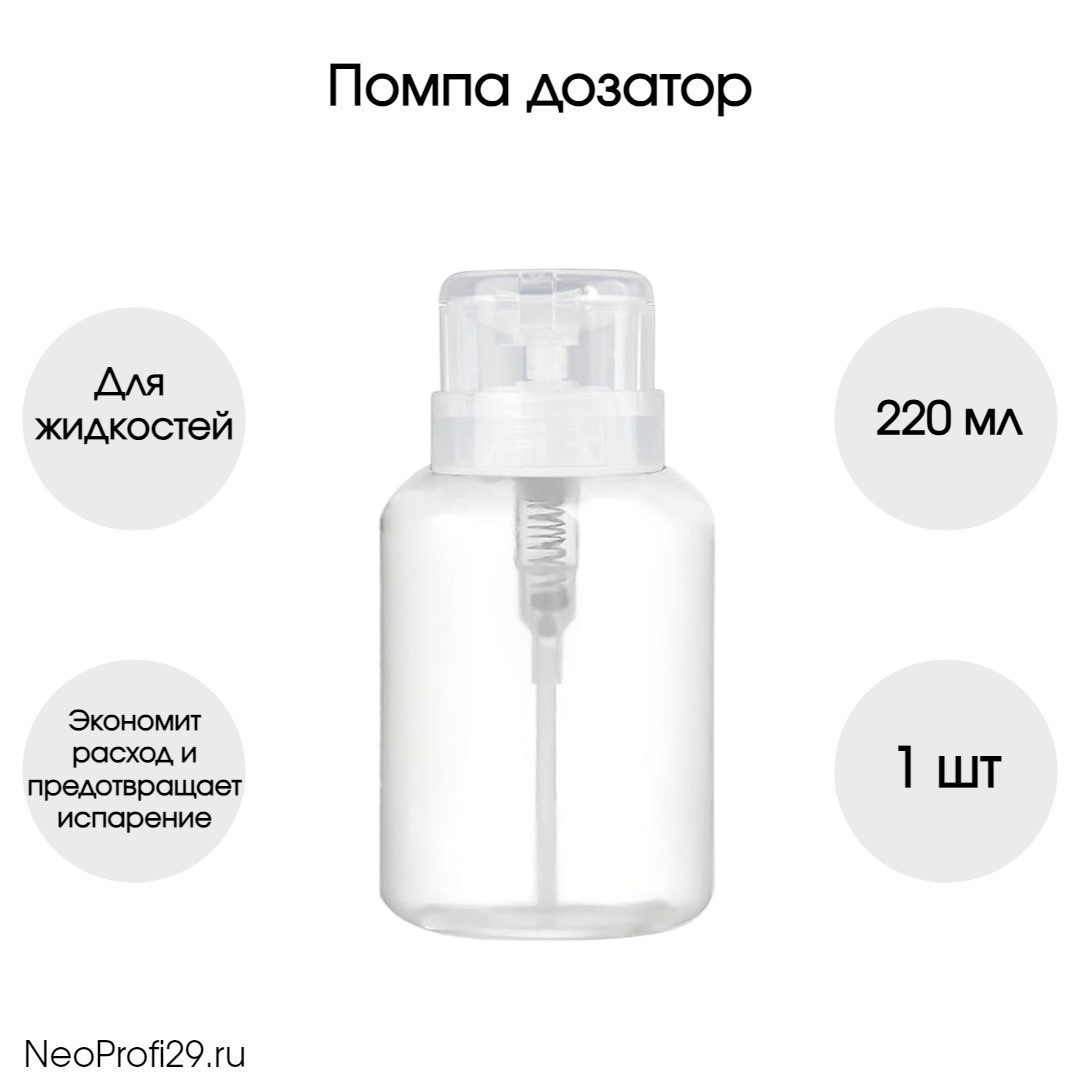 Емкость для дозированного расхода жидкости. Позволяет более экономично использовать дезинфицирующие средства, жидкости для снятия лака и липкого слоя, обезжириватель. Так же помогает сэкономить время при процедурах наращивания ногтей — больше не нужно открывать и закрывать емкости. Жидкость всегда доступна для использования, но при этом закрыта и не испаряется.