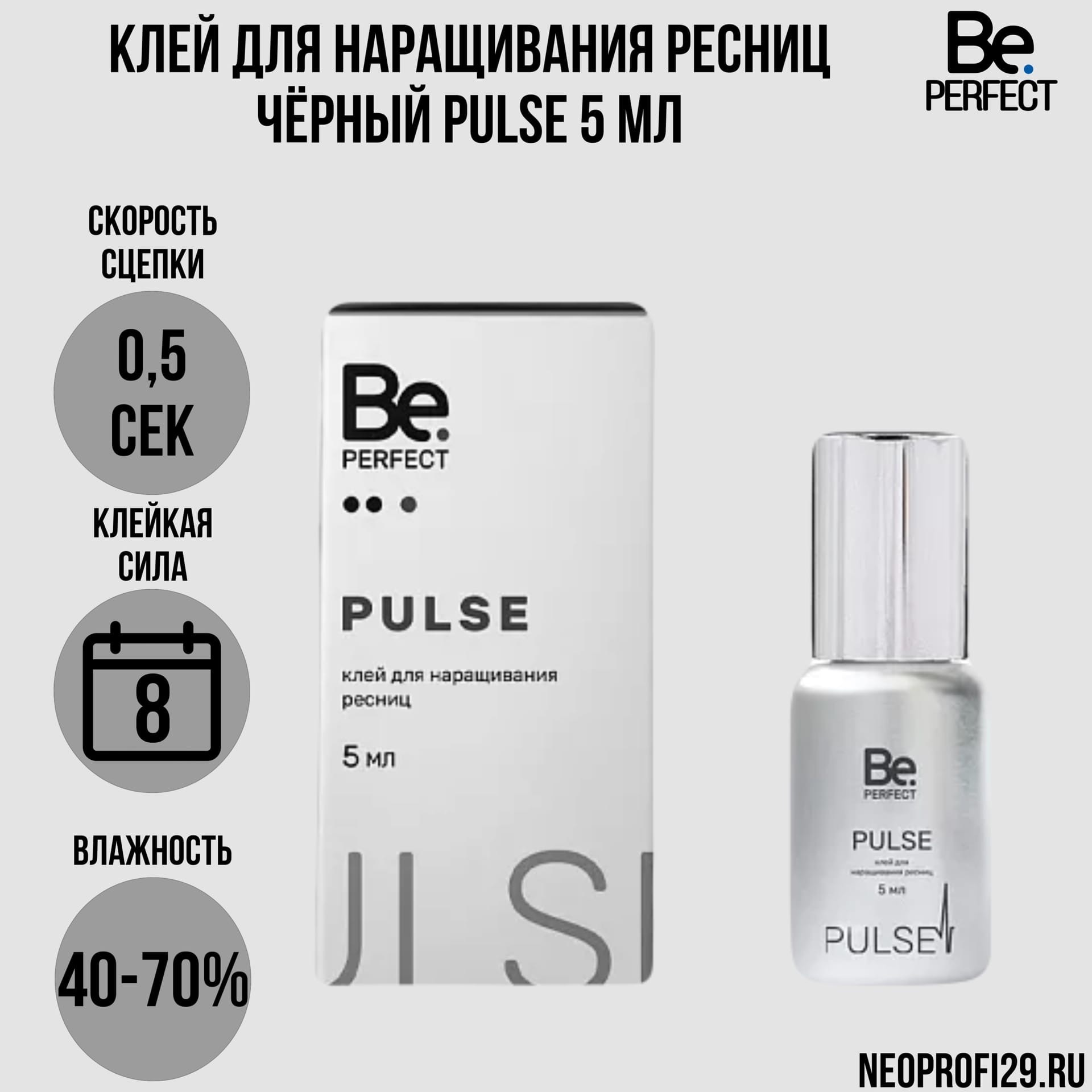 Клей для наращивания ресниц черный Pulse 0,5сек BePerfect 5мл