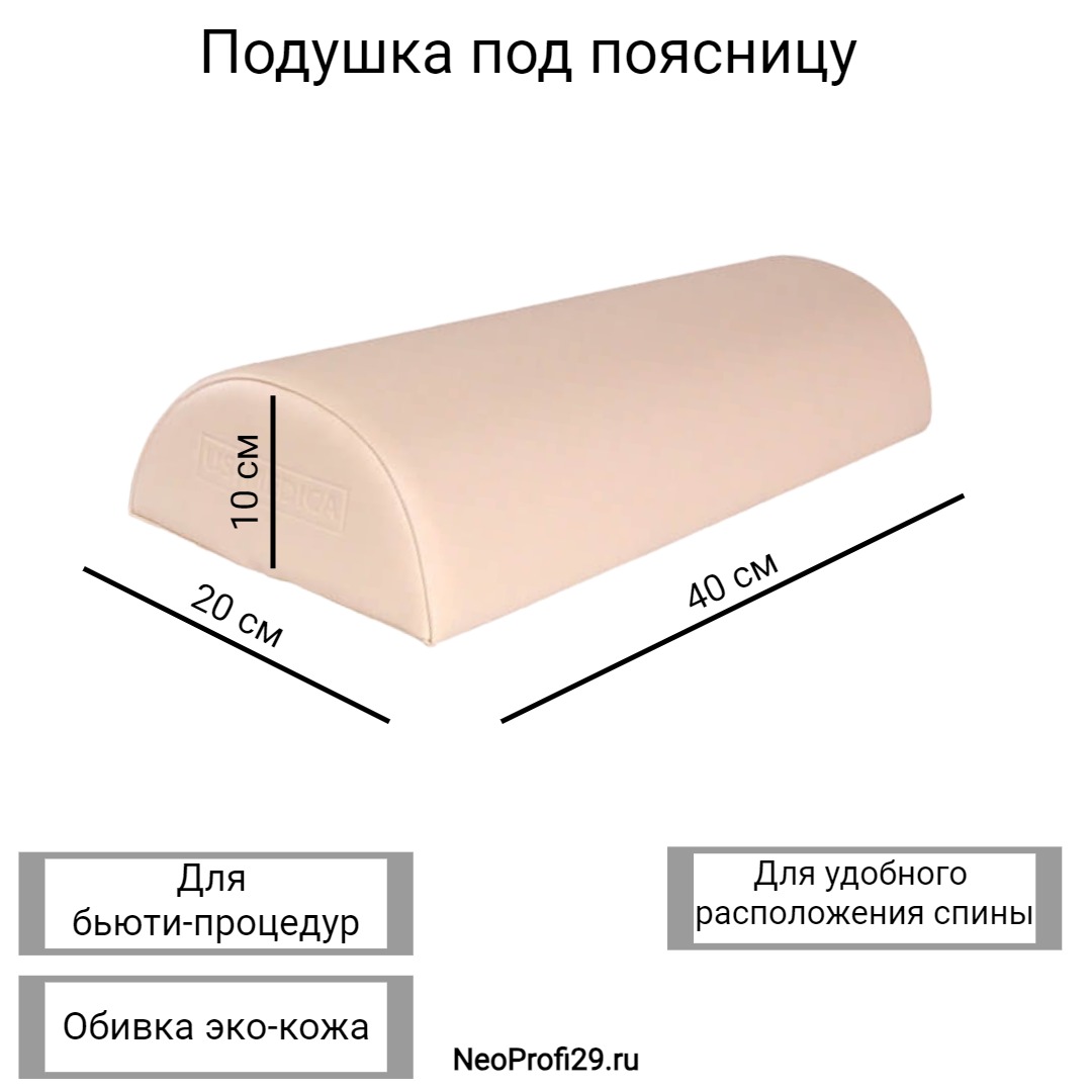 Универсальная подушечка кладется под голову во время проведения массажа или под поясницу при проведении процедур, обеспечивает высокий уровень комфорта для клиента.