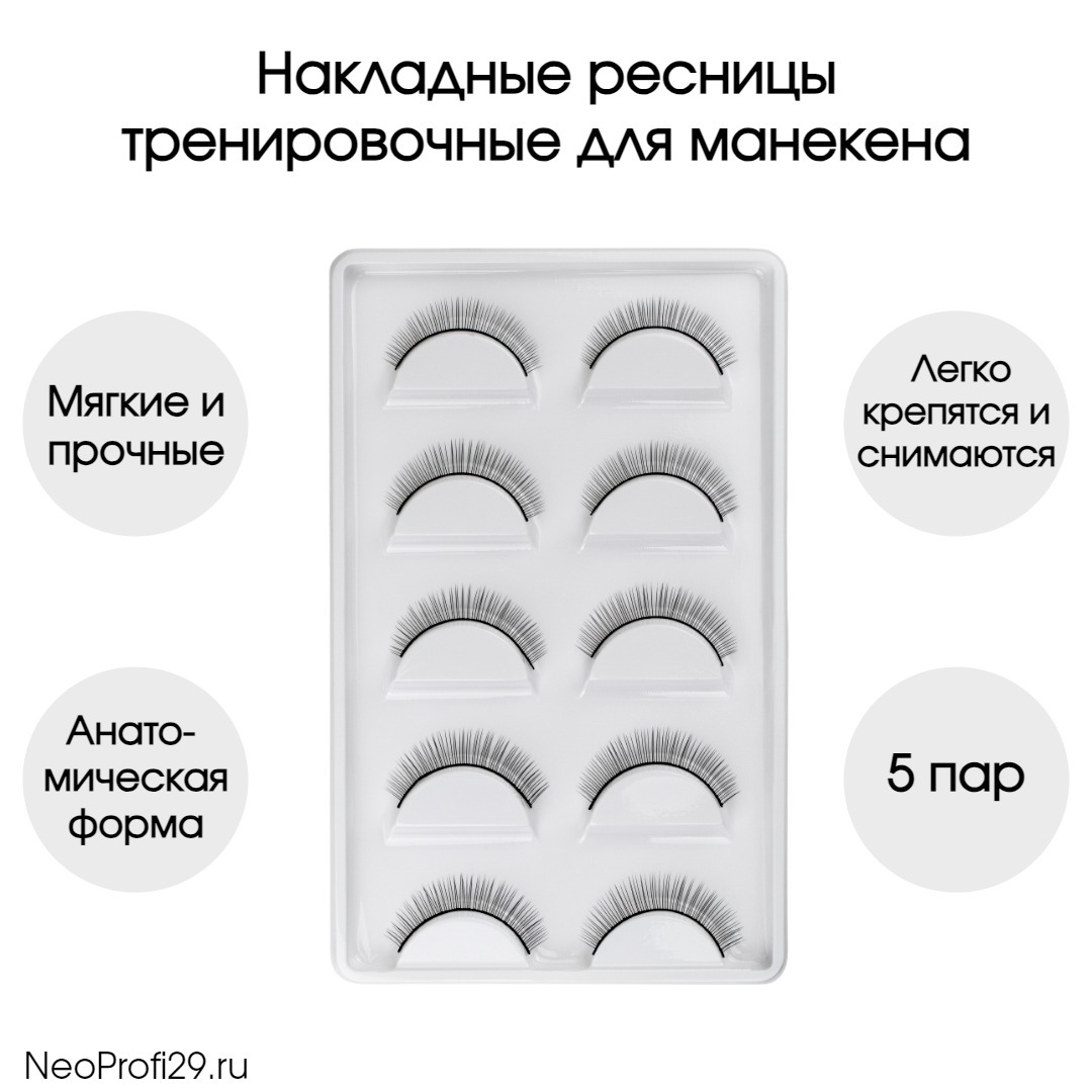 Ресницы тренировочные для манекена. Идеальное решение для обучающихся и начинающих мастеров для практической отработки процедуры наращивания ресниц. 5 пар в упаковке.