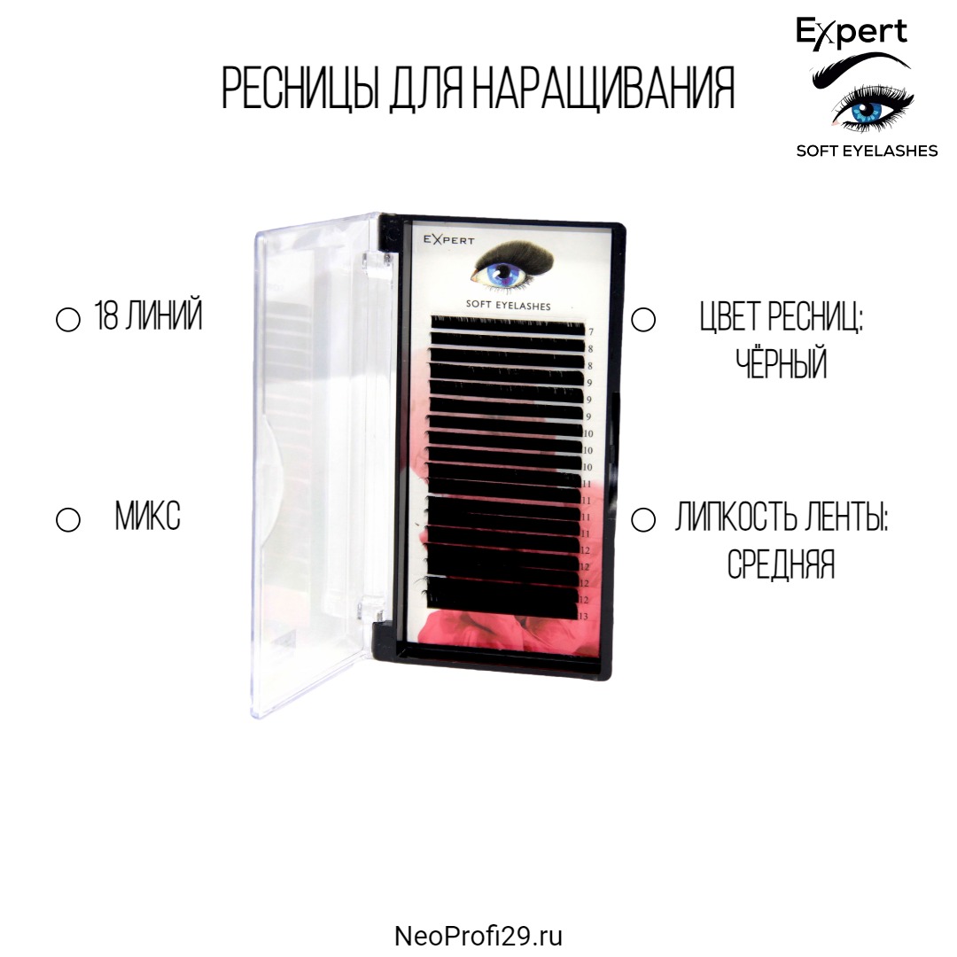 Ресницы черные Expert микс 18 полос