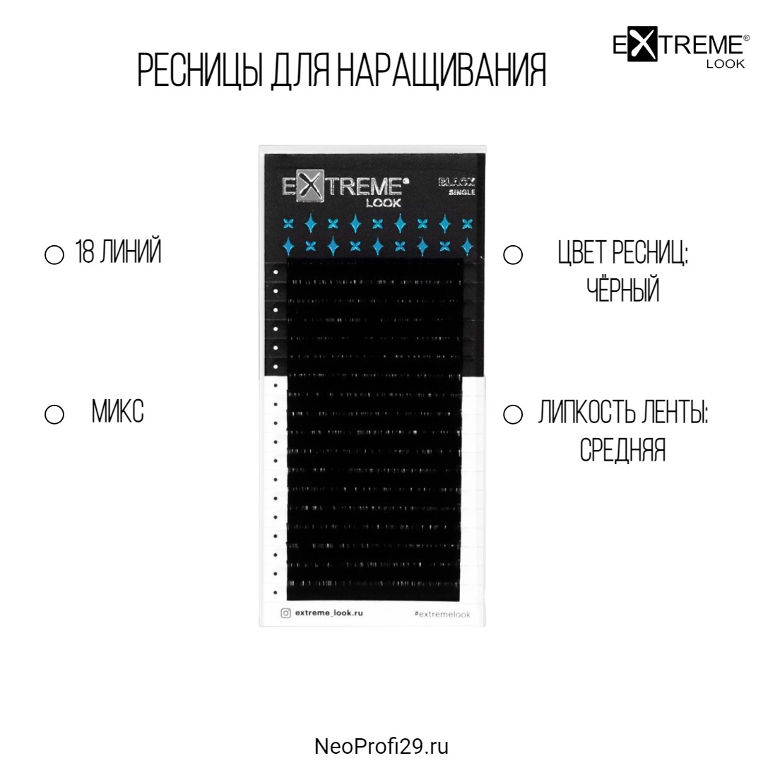 Ресницы черные Extreme Look микс 18 полос