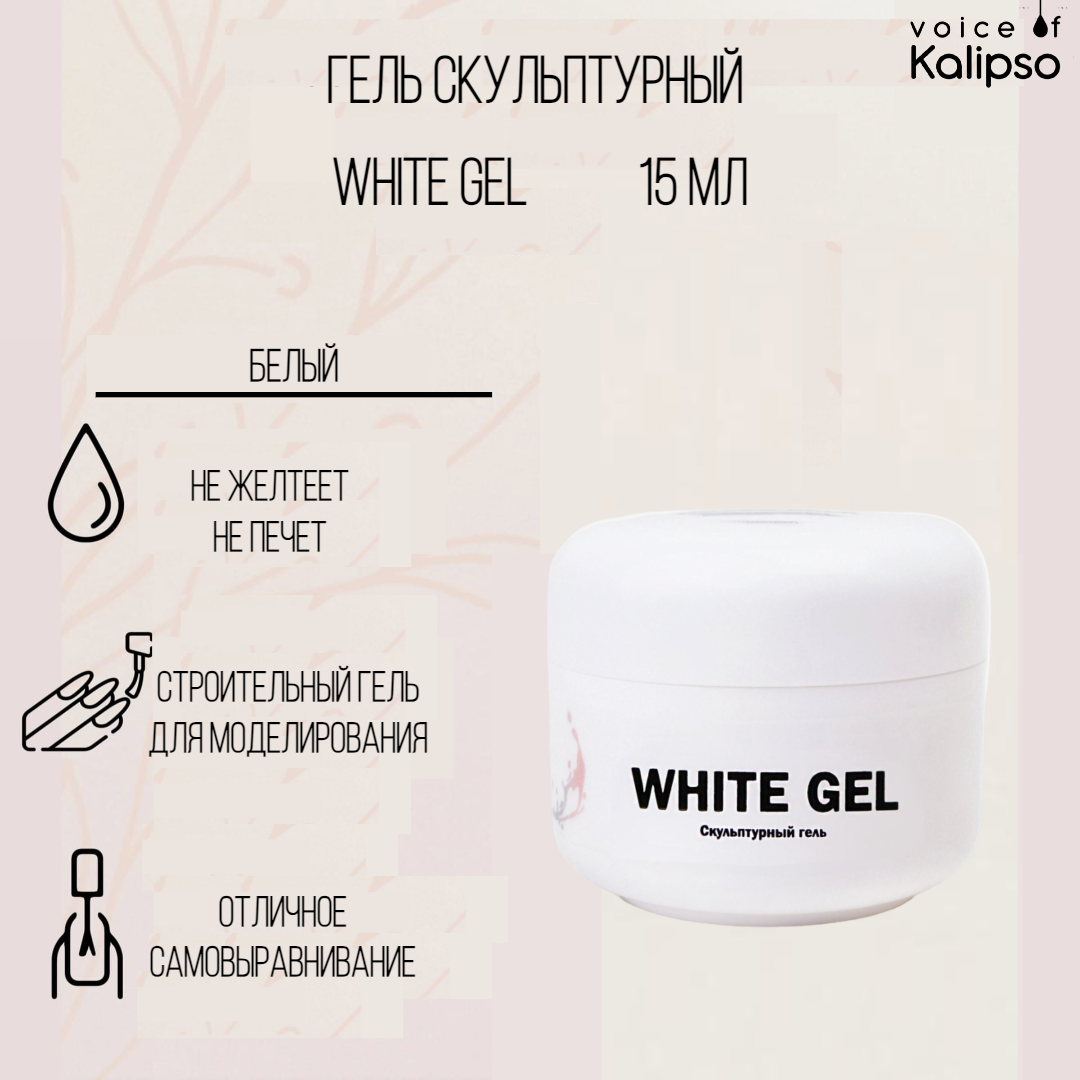 Гель скульптурный белый White Gel Kalipso 15 мл