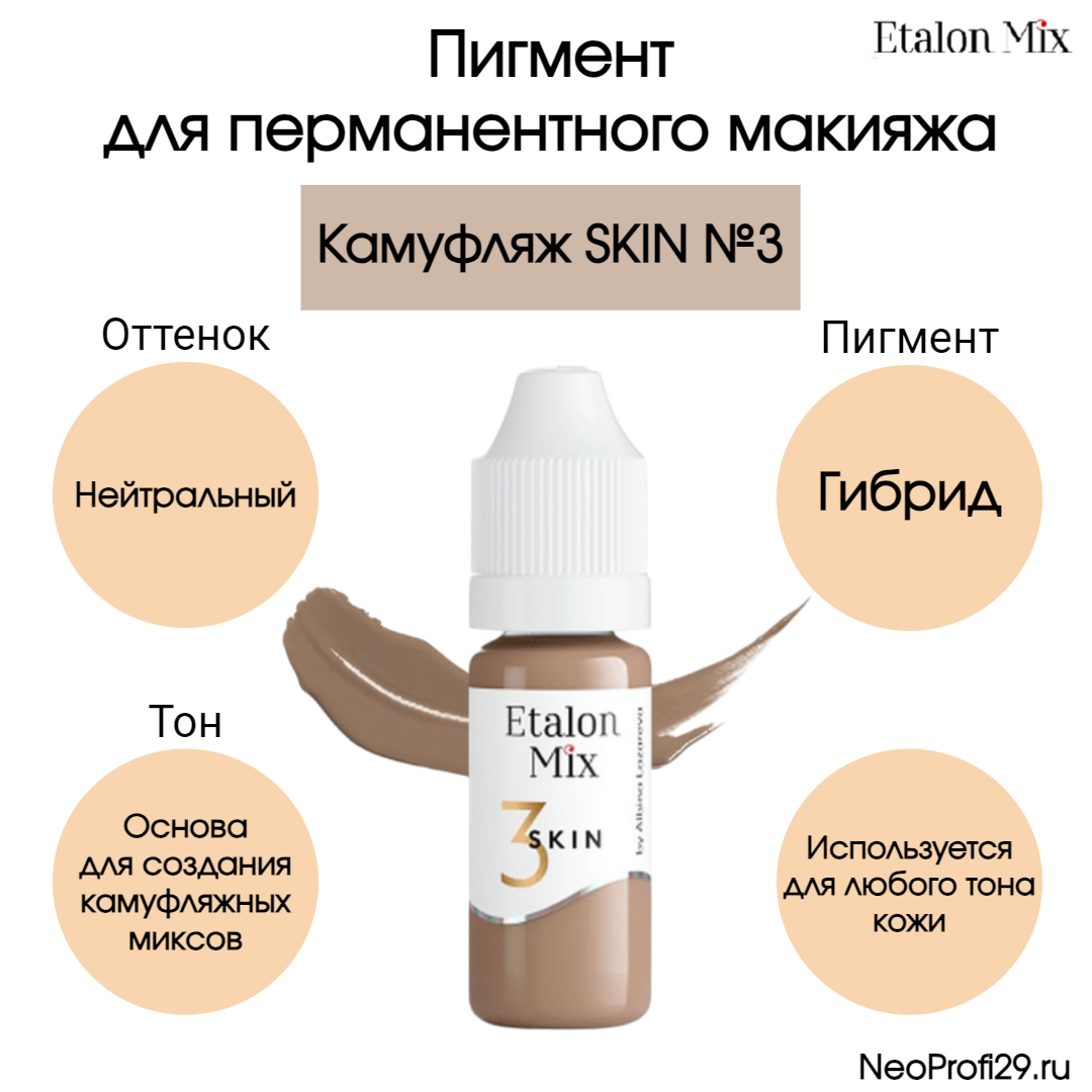 Пигмент для татуажа Камуфляж SKIN №3 Гибрид Etalon Mix 10 мл