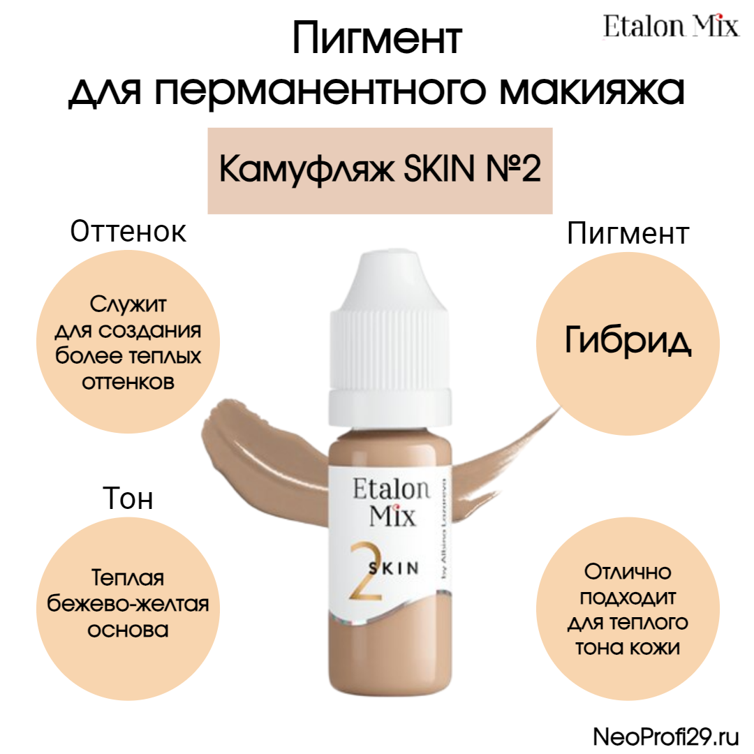 Пигмент для татуажа Камуфляж SKIN №2 Гибрид Etalon Mix 10 мл