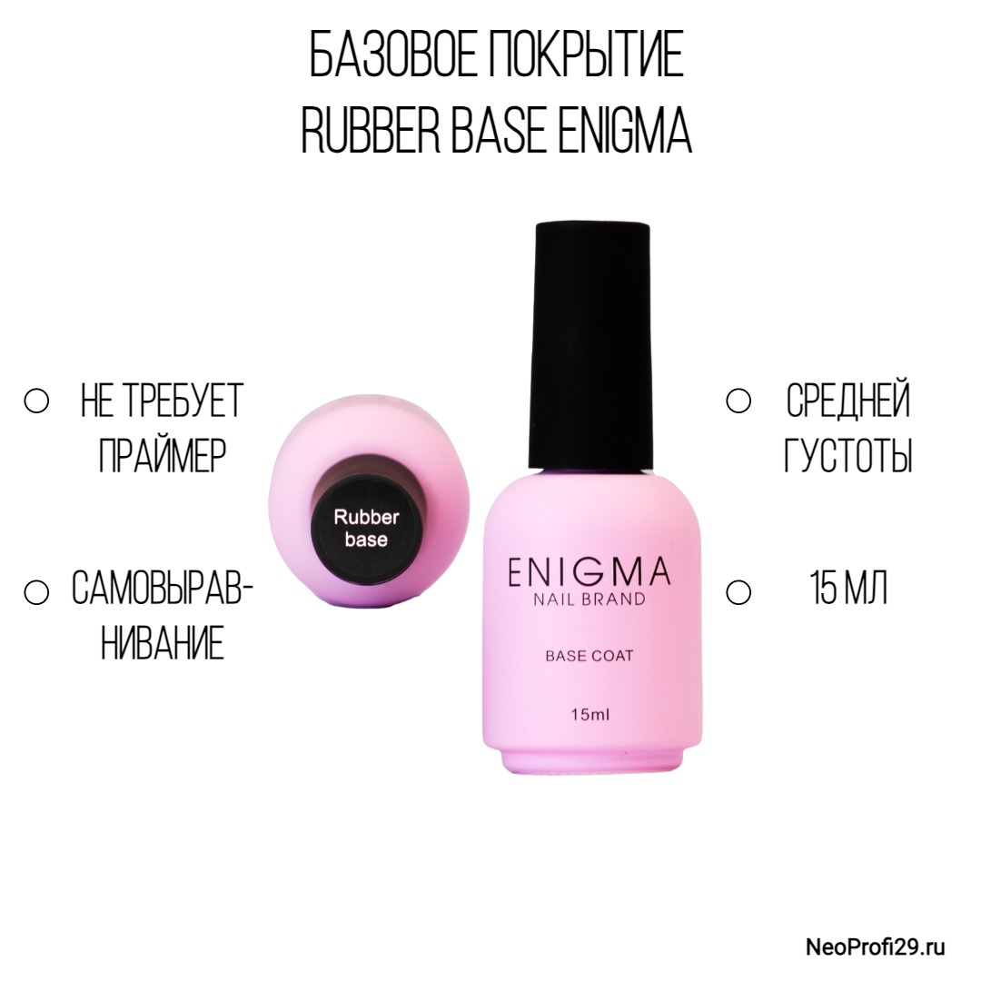 Каучуковая база ENIGMA Rubber - средней густоты, удобная и мягкая кисть, идеальная сцепка ногтевой пластины, не требует праймер. Самовыравнивающаяся, легко распределяется по ногтевой пластине, не затекает, подходит к разным ноготочкам склонным к расслаиванию, безопасная формула 9-free без метакриловой кислоты.