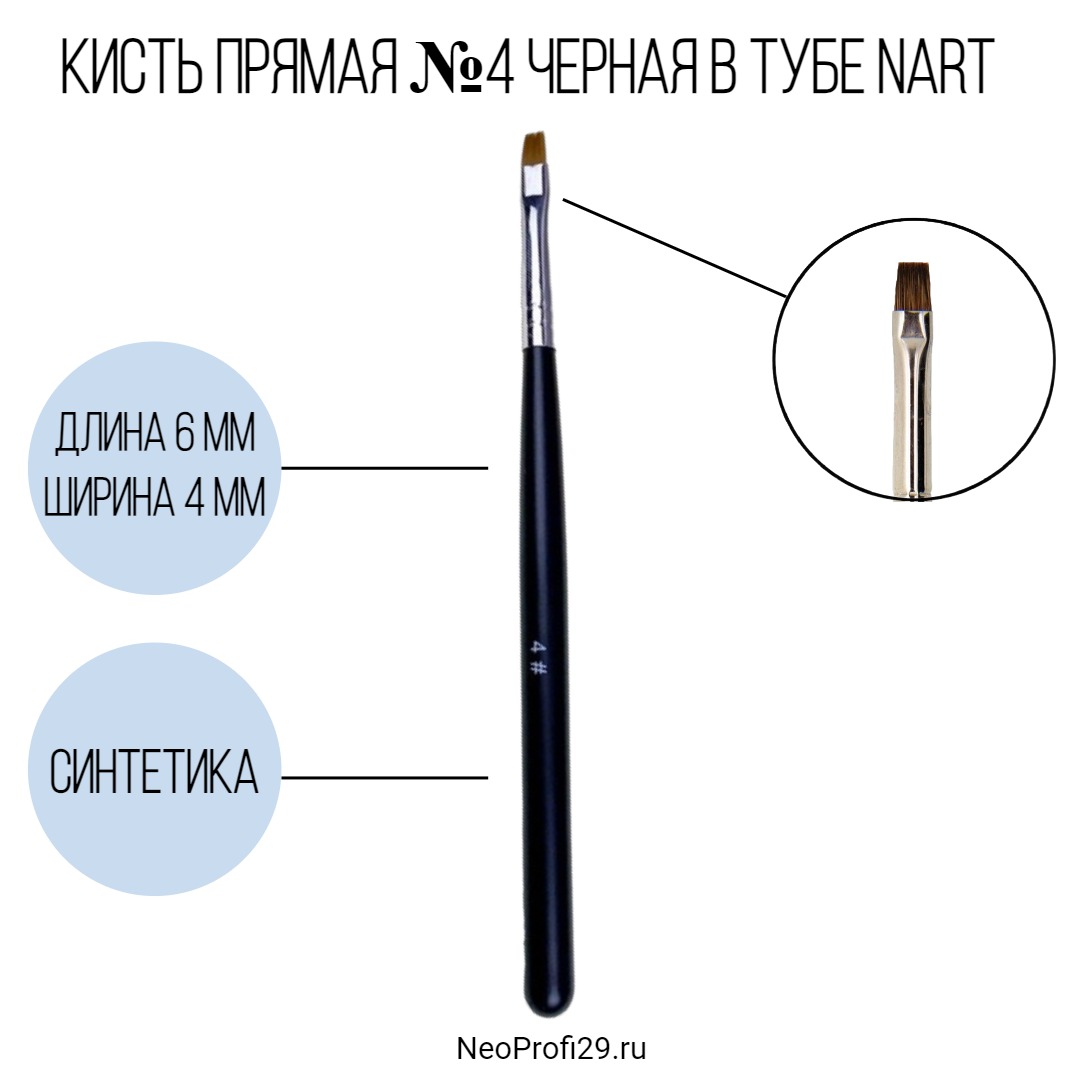 Кисть прямая №4 черная в тубе NArt