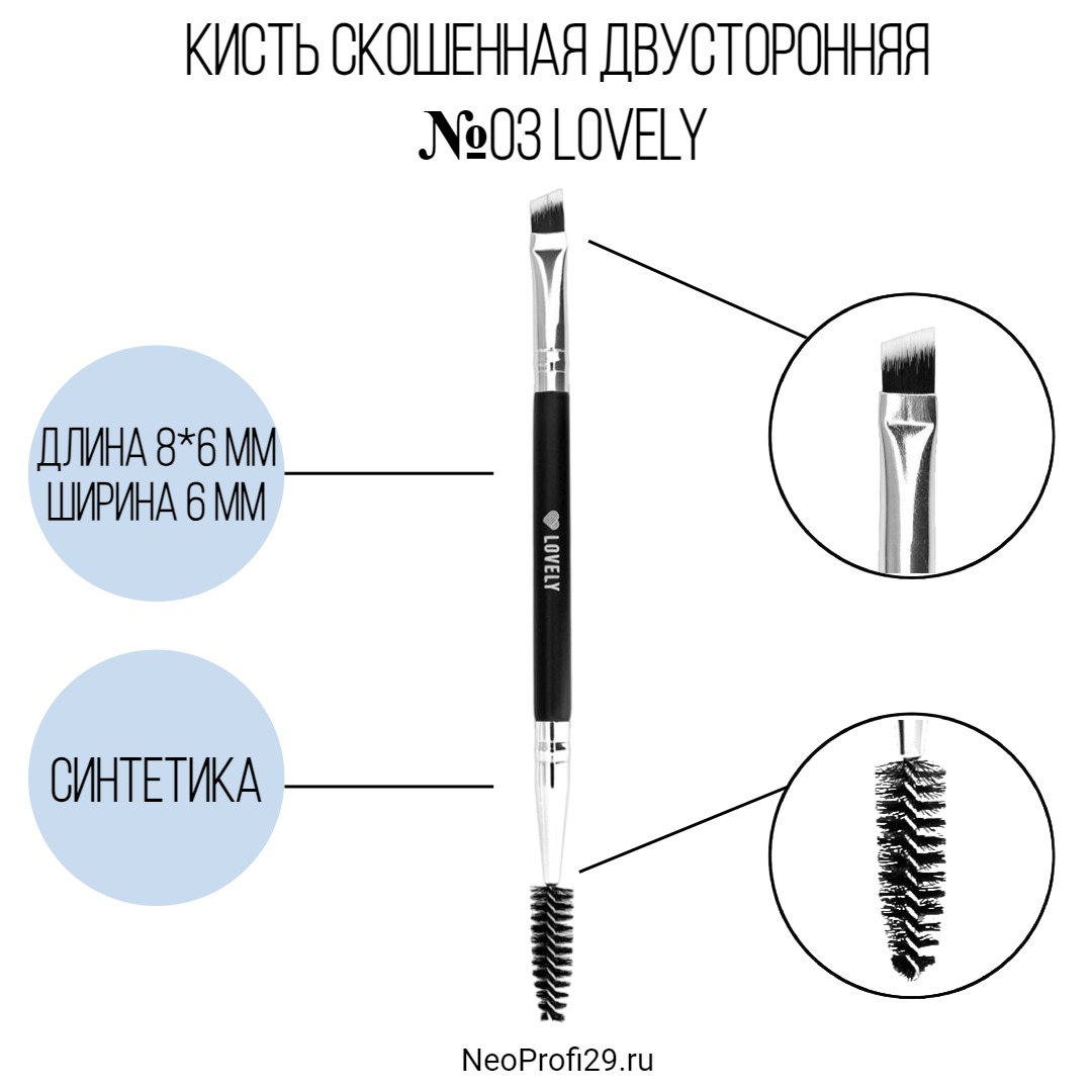 Двусторонняя кисть Lovely для окрашивания бровей и ресниц — многофункциональный инструмент для профессионального проведения процедуры окрашивания бровей и ресниц. Скошенная кисть из специального искусственного волокна идеально прокрашивает волоски бровей и ресниц. Винтовая щёточка помогает равномерно распределить краску по волоскам, а также расчесать брови и ресницы после проведения процедуры.