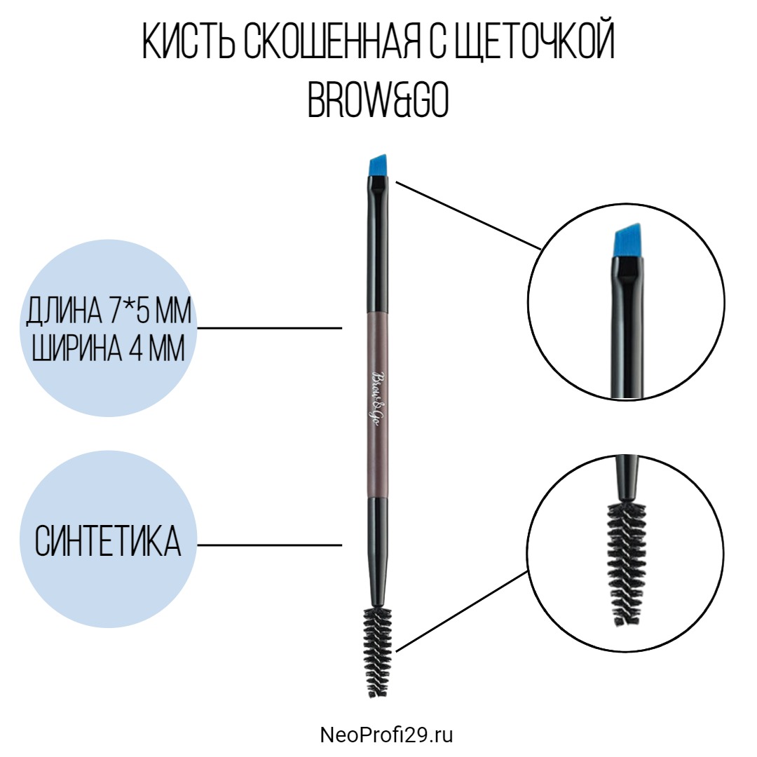 Кисть скошенная с щеточкой Brow&Go