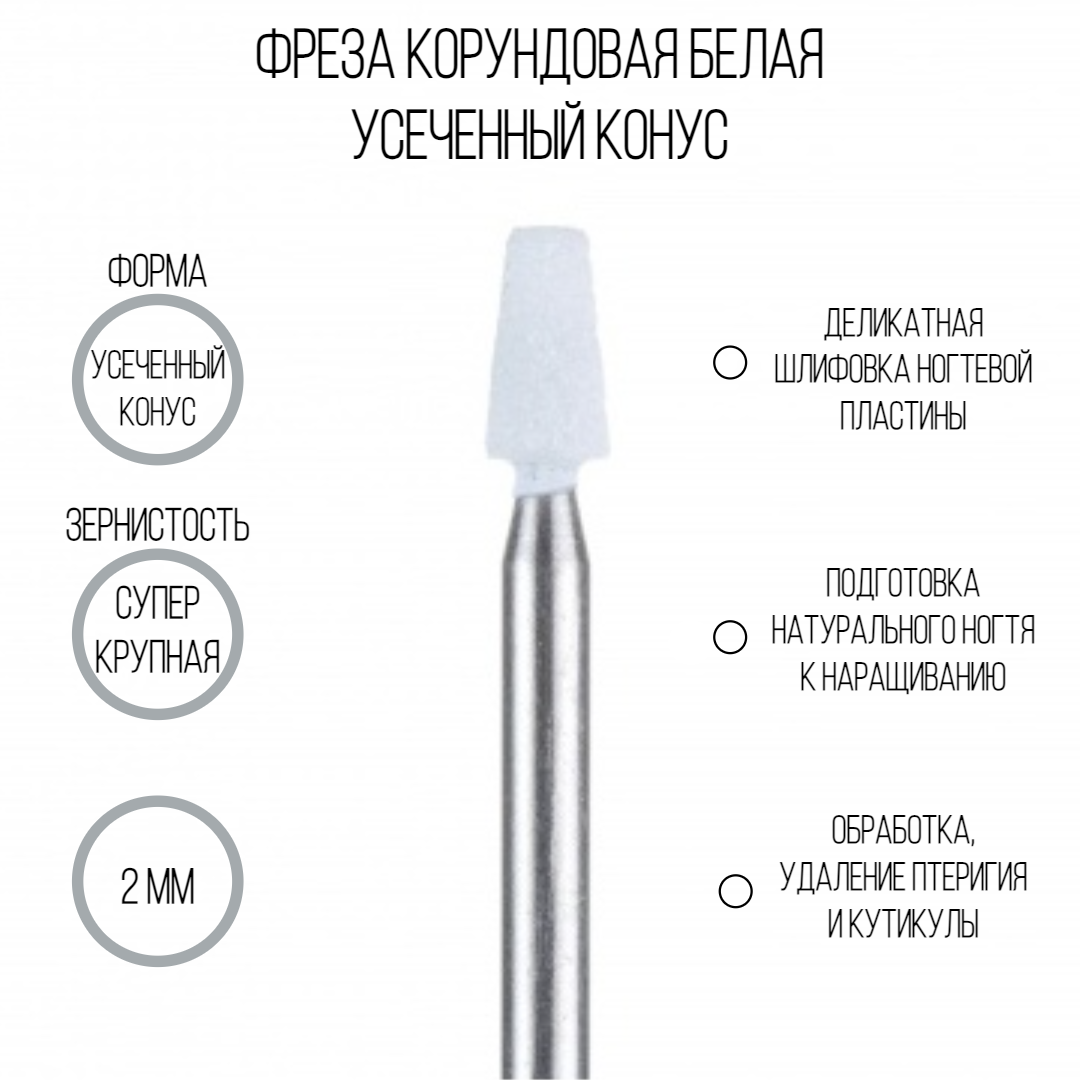 Фреза корундовая усеченный конус 2 мм (Белая) - Супер крупная зернистость.