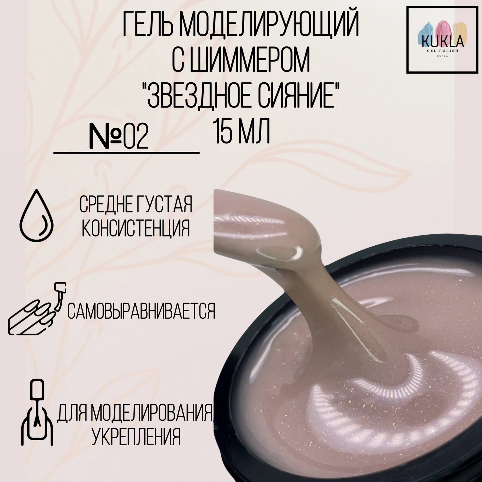 Гель моделирующий 02 бежевый с шиммером Звездное мерцание Kukla 15мл