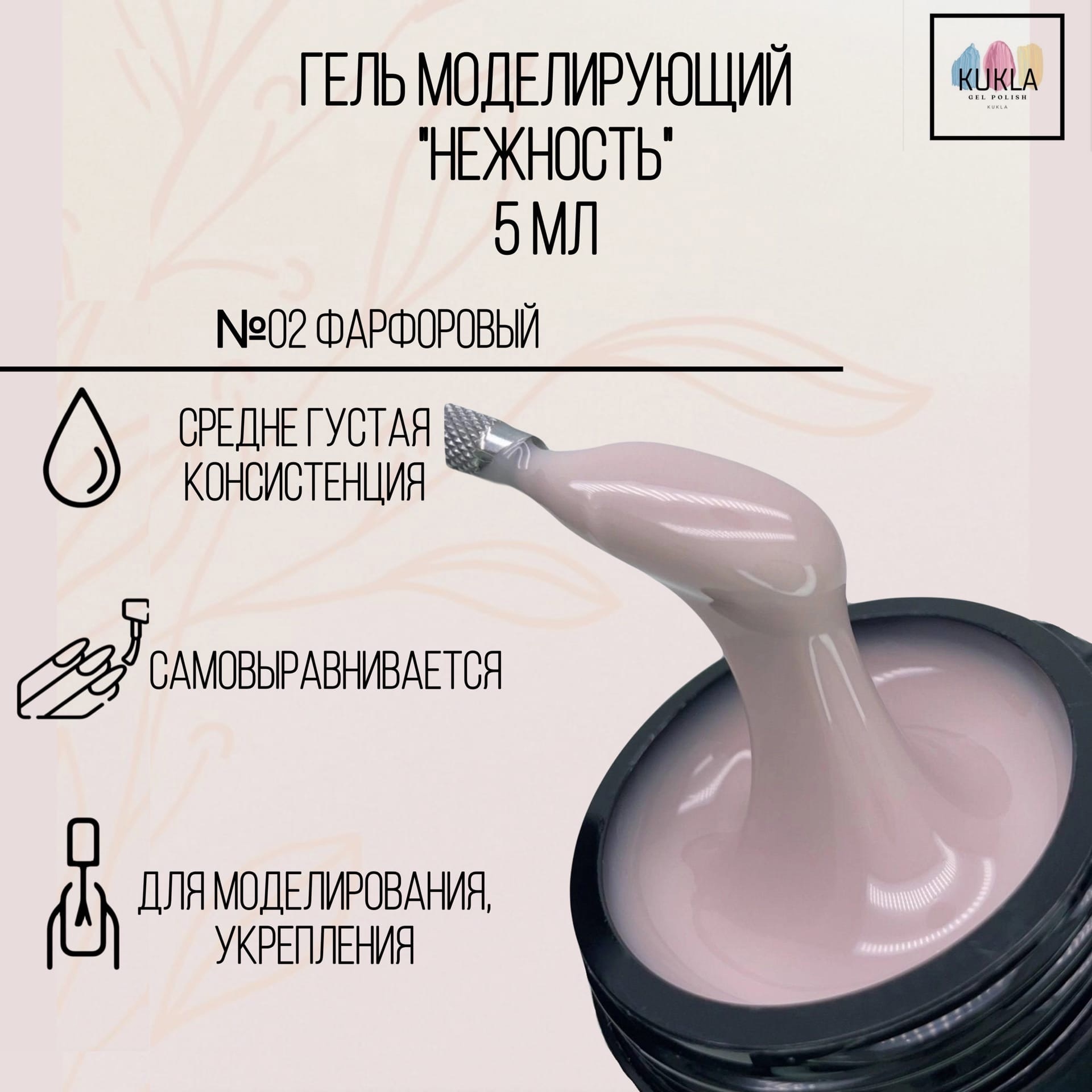 Гель моделирующий Тон 02 фарфоровый Нежность Kukla 5 мл