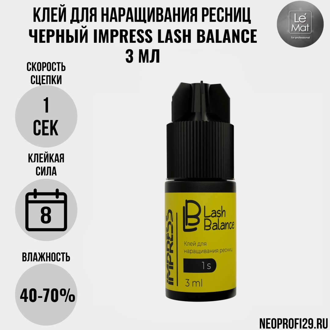 Клей для наращивания ресниц черный Impress 1 сек Lash Balance by LeMat 3 мл