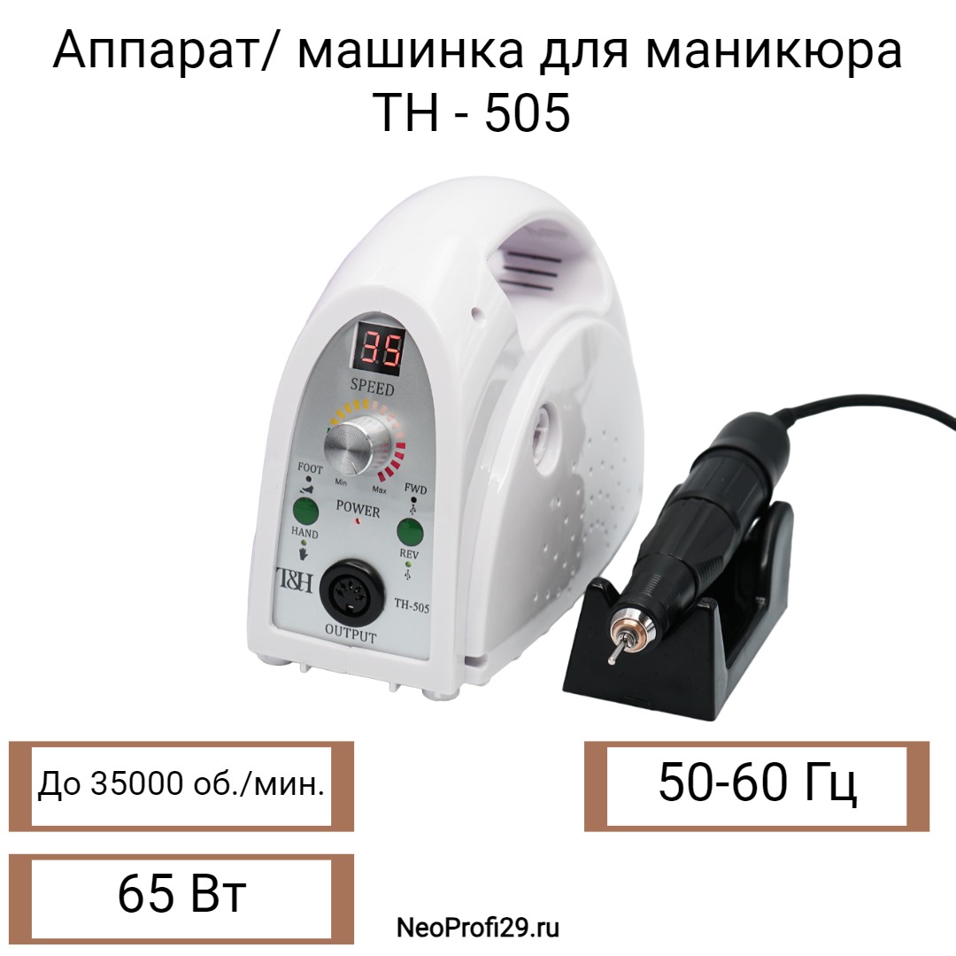 T&H -505 - незаменимый помощник мастера по маникюру и педикюру. С его помощью можно очень быстро избавиться от огрубевшей кожи, натоптышей и мозолей при педикюре, сделать качественный маникюр