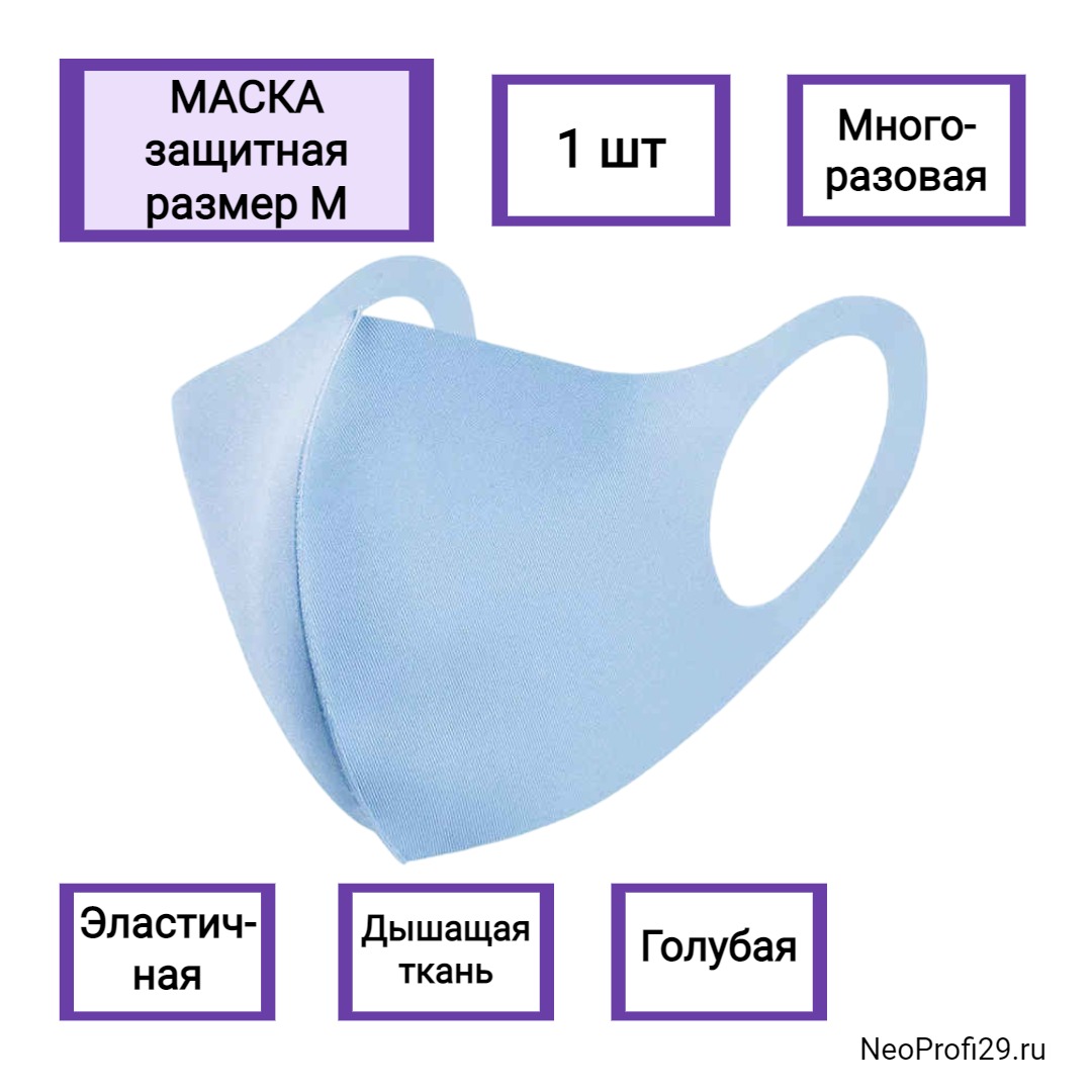 Маска защитная многоразовая, голубая M