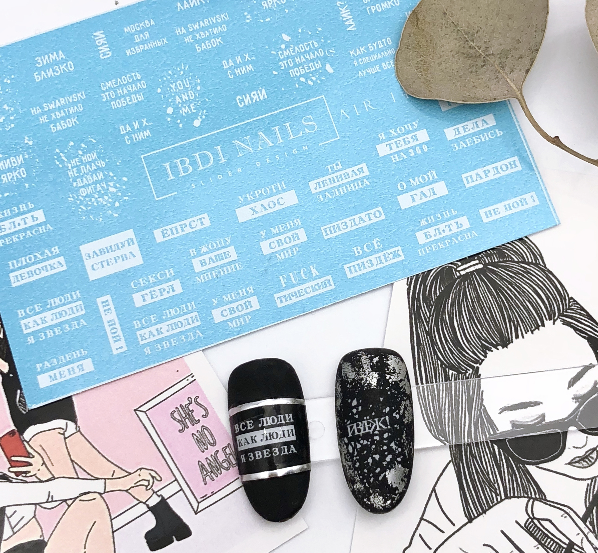 3. На просушенные слои белого цвета нанесите топ для лучшего сцепления слайдер-дизайна с ногтем. Просушите топ в УФ лампе - 1мин., в LED лампе - 30сек. Слайдер-дизайн кладем на липкий слой!!!