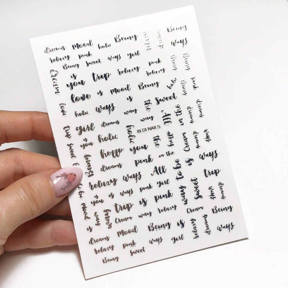 ПРИМЕНЕНИЕ: снять липкий слой с цвета, "подцепить" нужный элемент пинцетом, перенести на ноготь, перекрыть топом.