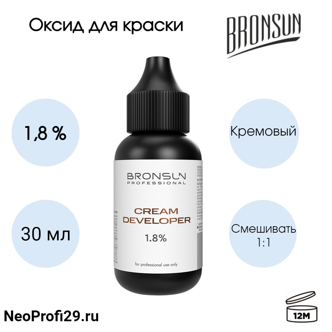 Оксидант-крем 1,8% BRONSUN разработан специально для работы со всеми видами профессиональных красок для бровей и ресниц BRONSUN.