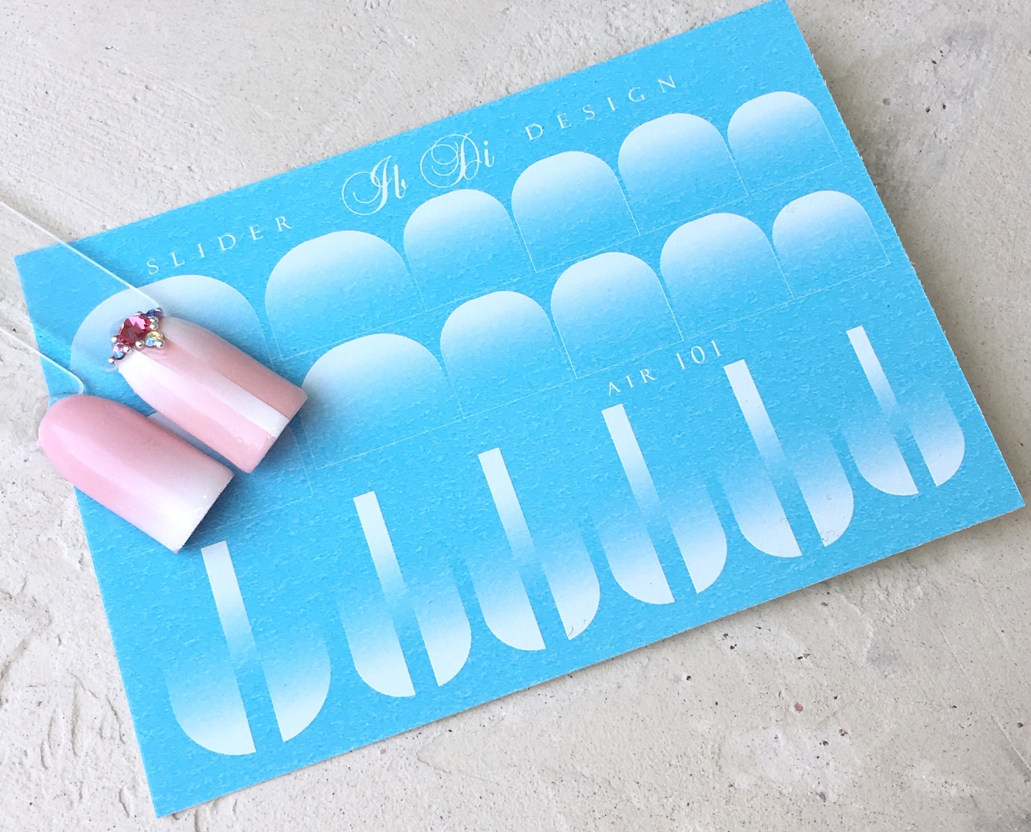 3. На просушенные слои белого цвета нанесите топ для лучшего сцепления слайдер-дизайна с ногтем. Просушите топ в УФ лампе - 1мин., в LED лампе - 30сек. Слайдер-дизайн кладем на липкий слой!!!