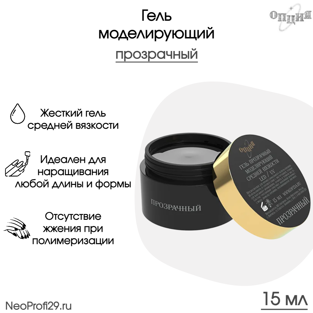 Гель моделирующий средняя вязкость прозрачный Опция 15 мл