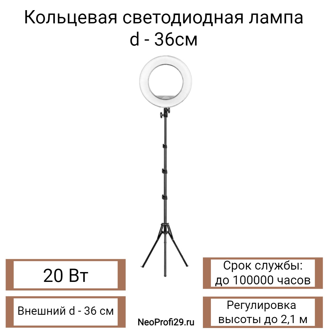 Кольцевая лампа со штативом предназначена для настройки правильного света при проведении фотосессий и для работы мастеров индустрии красоты (для фото лица - макияж, прическа и т.д.).