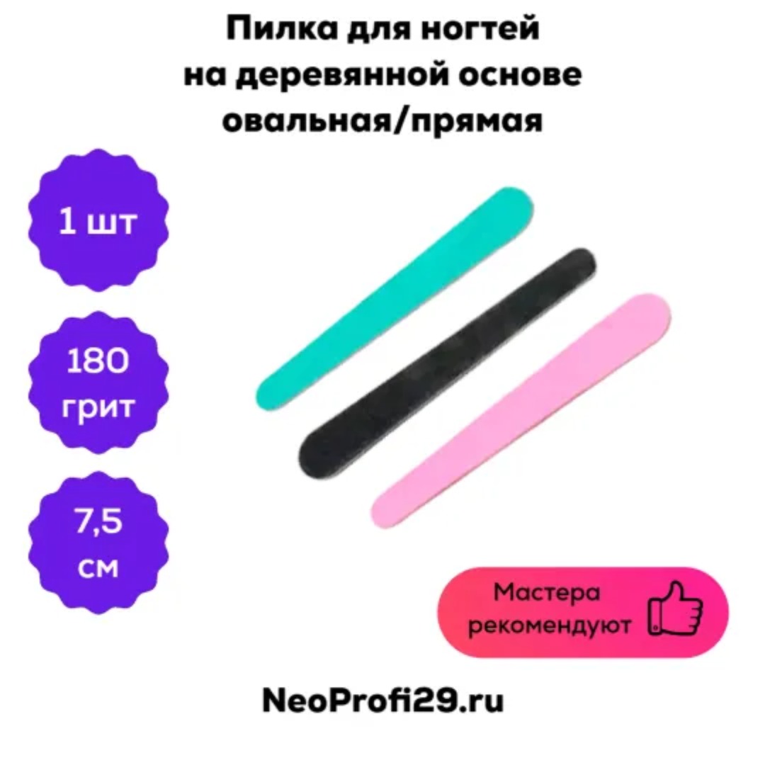 Пилка для ногтей на деревянной основе овальная/прямая 7,5см