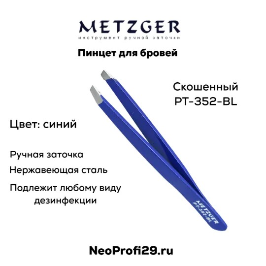 Пинцет для бровей скошенный PT 352 BL синий Metzger
