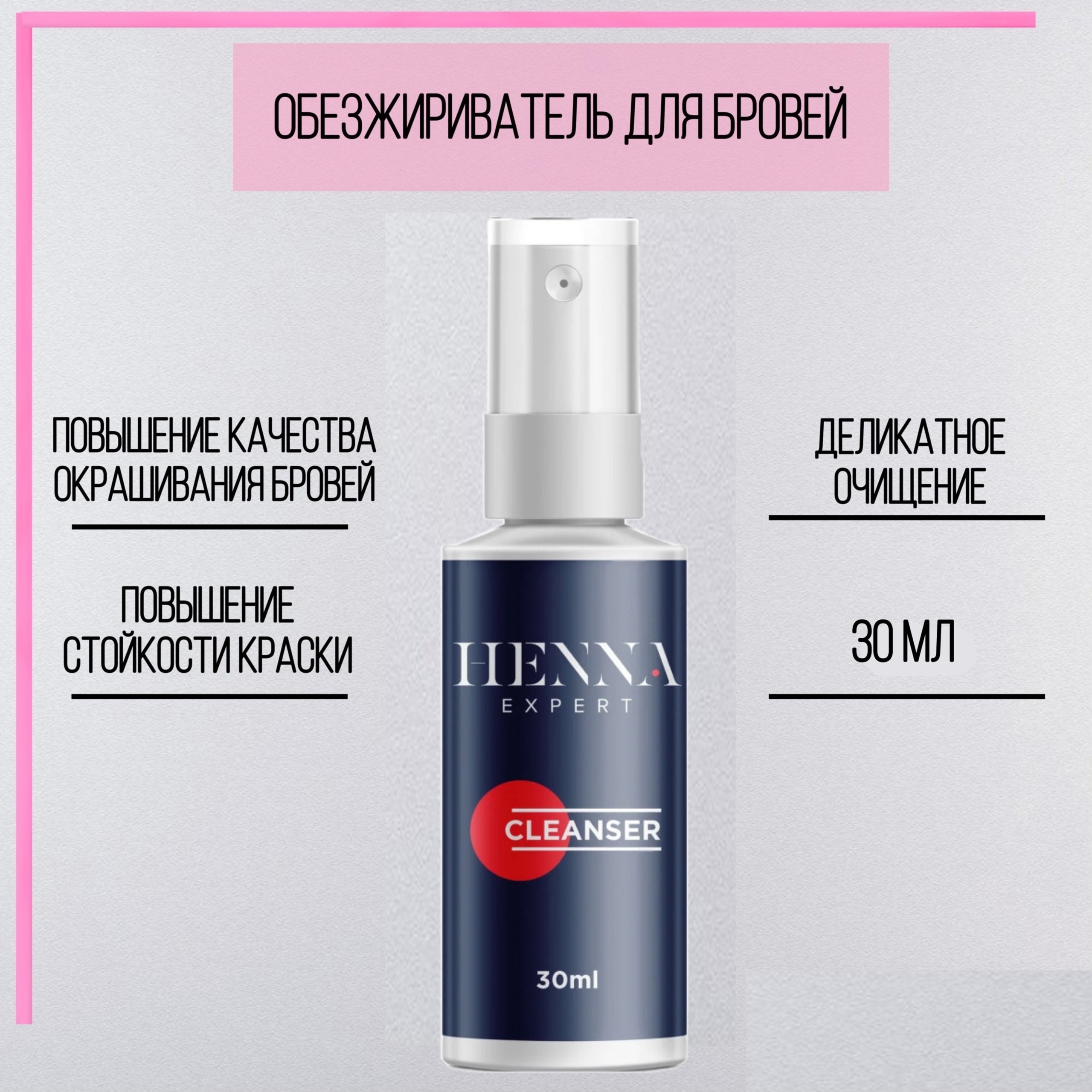 Профессиональный обезжириватель для подготовки зоны бровей к процедуре окрашивания. Не содержит спирта в составе, поэтому не пересушивает кожу и работает очень деликатно. Клинсер от Хенна Эксперт нежно убирает остатки косметики и аккуратно очищает кожу и волоски загрязнений, оставляя после себя приятный аромат. Объем 30мл.