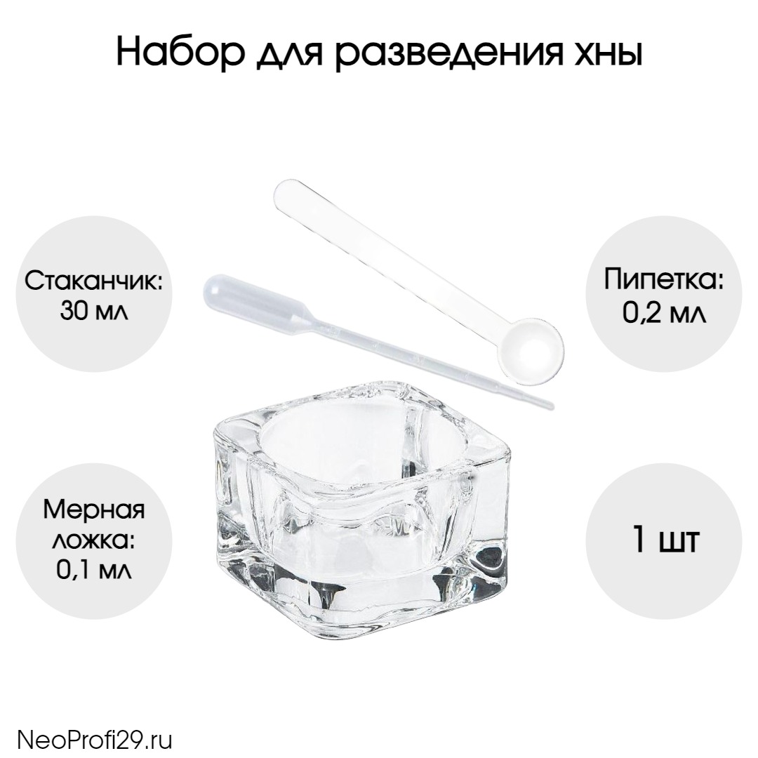 В стеклянную емкость добавляется мерной ложечкой то количество сухой хны, которое необходимо для проведения одной процедуры