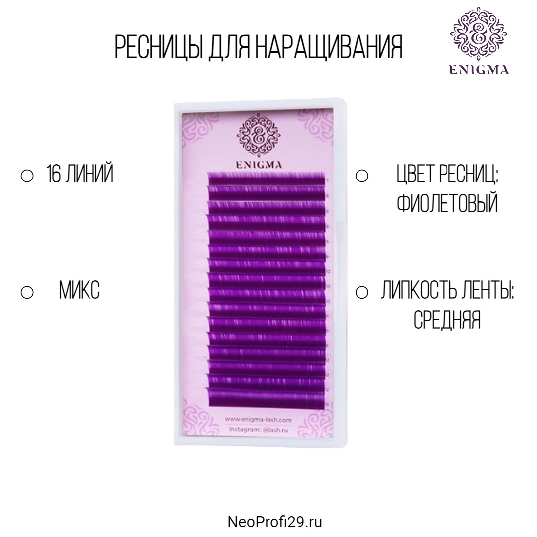 Ресницы цветные Enigma Фиолетовые микс 16 полос