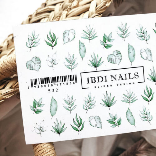 Дизайны Ibdi Nails выполнены на ультра тонкой полимерной пленке на бумажной основе, отличаются насыщенностью цвета и самыми яркими дизайнами. Пленка снимается с подложки путем размачивания, пленка пластична, повторяет форму ногтя, легко можно подкорректировать изображение на ногте. Слайдер-дизайн рекомендуется клеить на белый или светлый фон. При правильном применении и соблюдении инструкции, носка до коррекции.