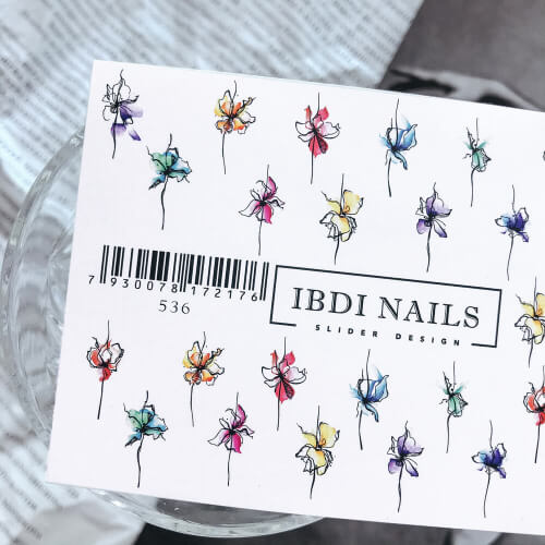 Дизайны Ibdi Nails выполнены на ультра тонкой полимерной пленке на бумажной основе, отличаются насыщенностью цвета и самыми яркими дизайнами. Пленка снимается с подложки путем размачивания, пленка пластична, повторяет форму ногтя, легко можно подкорректировать изображение на ногте. Слайдер-дизайн рекомендуется клеить на белый или светлый фон. При правильном применении и соблюдении инструкции, носка до коррекции.