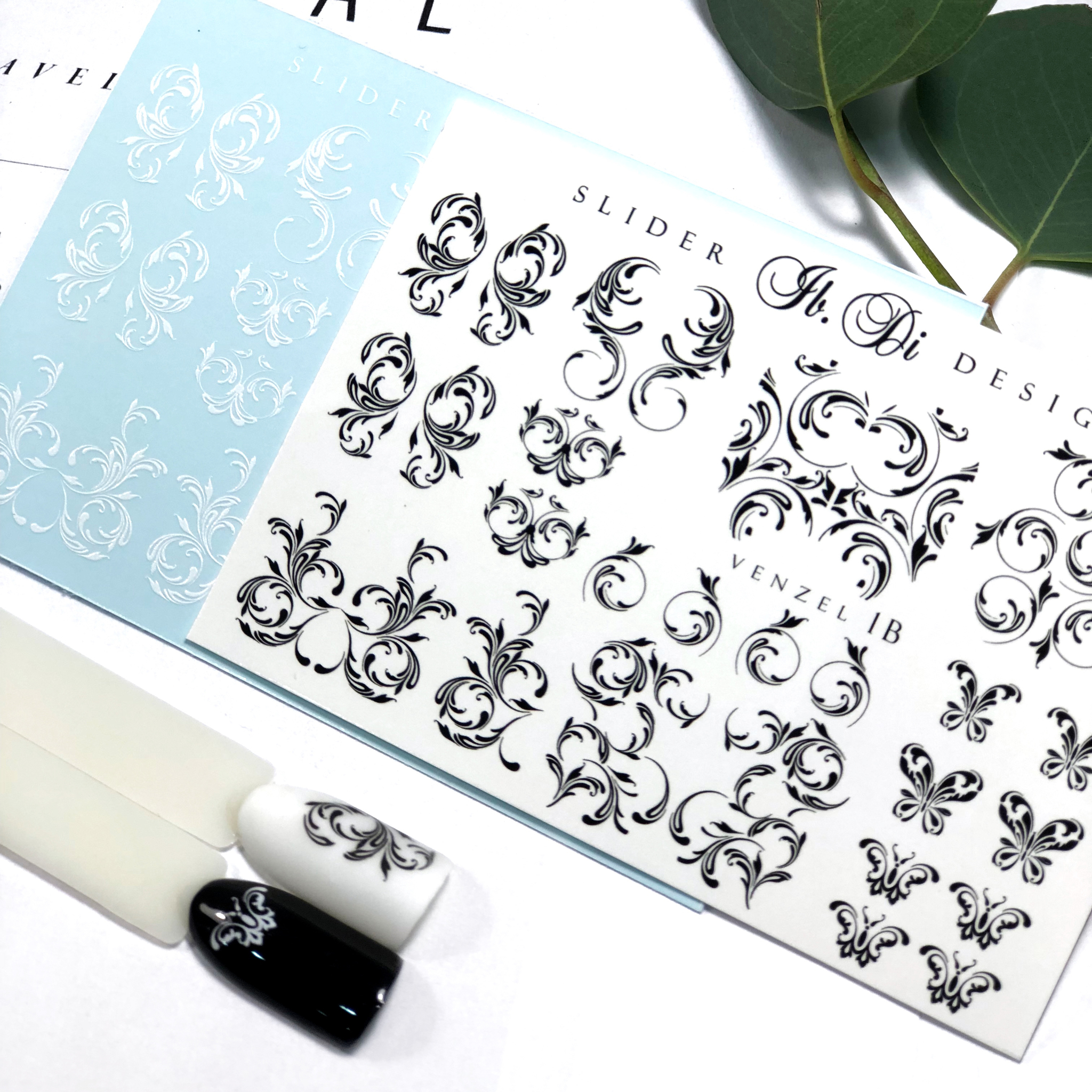 3. На просушенные слои белого цвета нанесите топ для лучшего сцепления слайдер-дизайна с ногтем. Просушите топ в УФ лампе - 1мин., в LED лампе - 30сек. Слайдер-дизайн кладем на липкий слой!!!